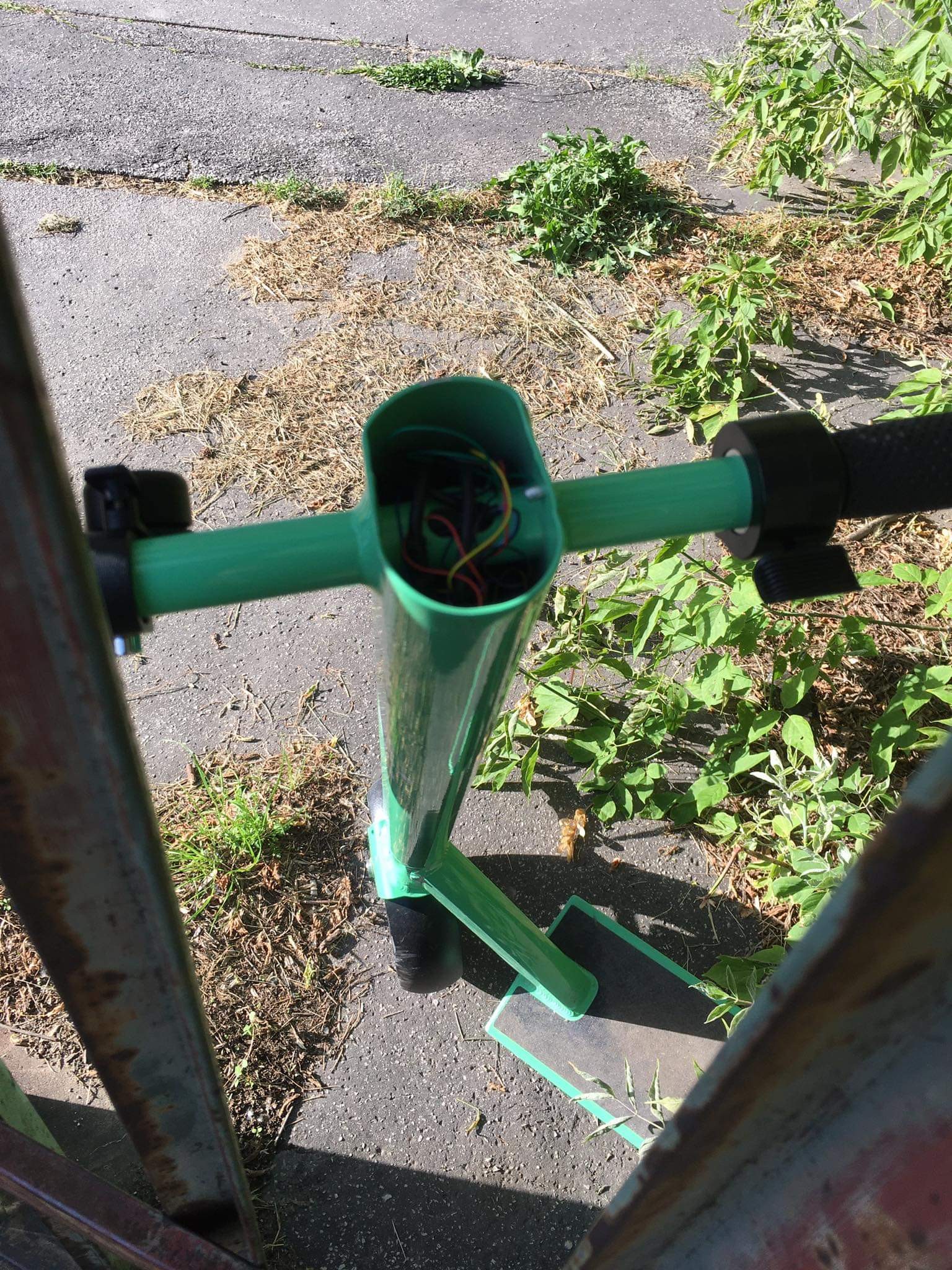 Na tejto kolobežke niekto odtrhol panel s riadiacou elektronikou.