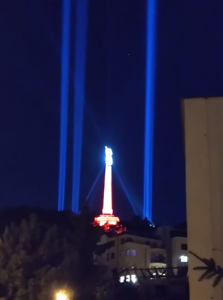 Viacero Bratislavčanov včera večer zaregistrovalo, že pamätník Slavín bol osvietený červenou farbou, pričom nad touto dominantou nášho hlavného mesta ešte svietili aj modré lúče. Niektorí, najmä tí neskôr narodení, sa na sociálnej sieti svojich známych pýtali na dôvod, ktorý bol veľmi prostý...