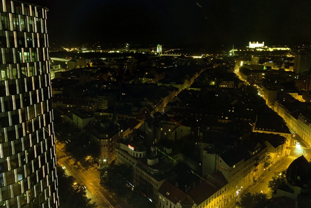 Počas kultúrneho podujatia tzv. Bielej noci umožňujú obmedzenému počtu návštevníkov kochať sa z výškovej budovy VÚB Banky...