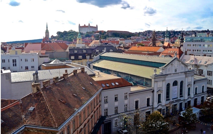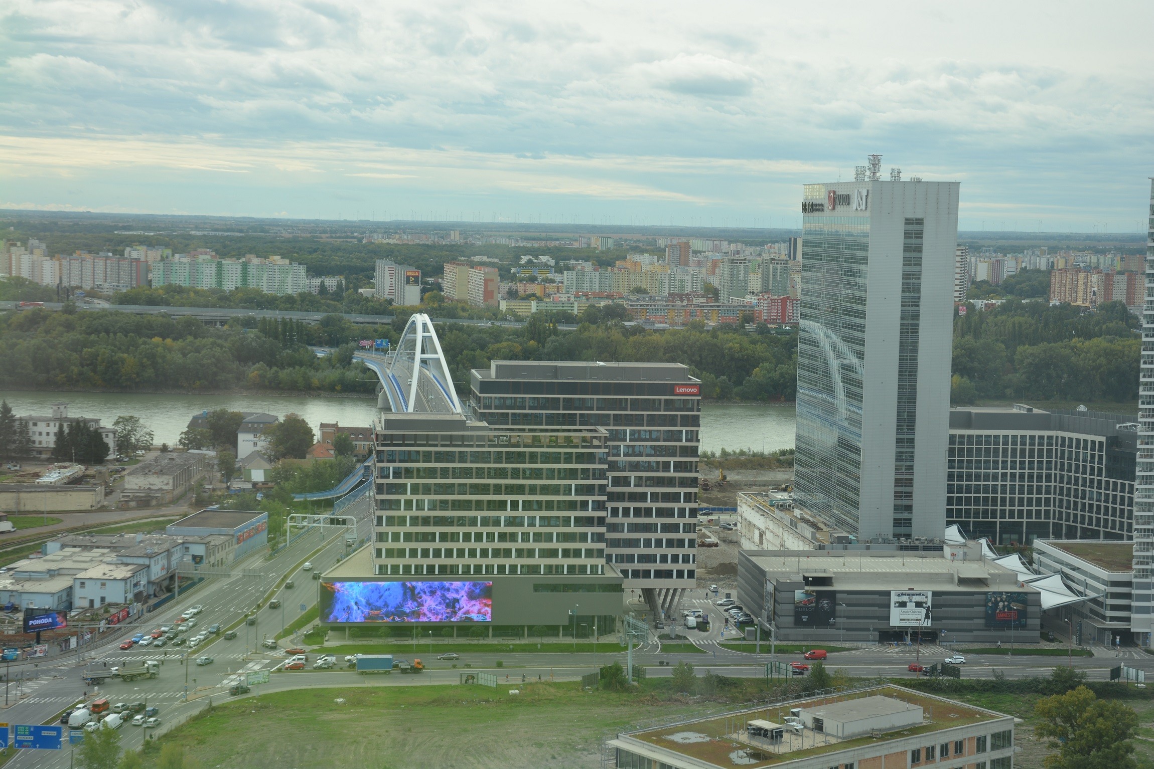 Výškové budovy – pochopiteľne, že nádherný výhľad zhora na mesto či do jeho okolia poskytujú aj niektoré bratislavské mrakodrapy, teda presnejšie povedané budovy vyššie ako sto metrov.