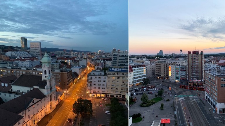 Pri západe slnka poskytoval pohľad z výšky naozaj peknú večernú panorámu mesta...