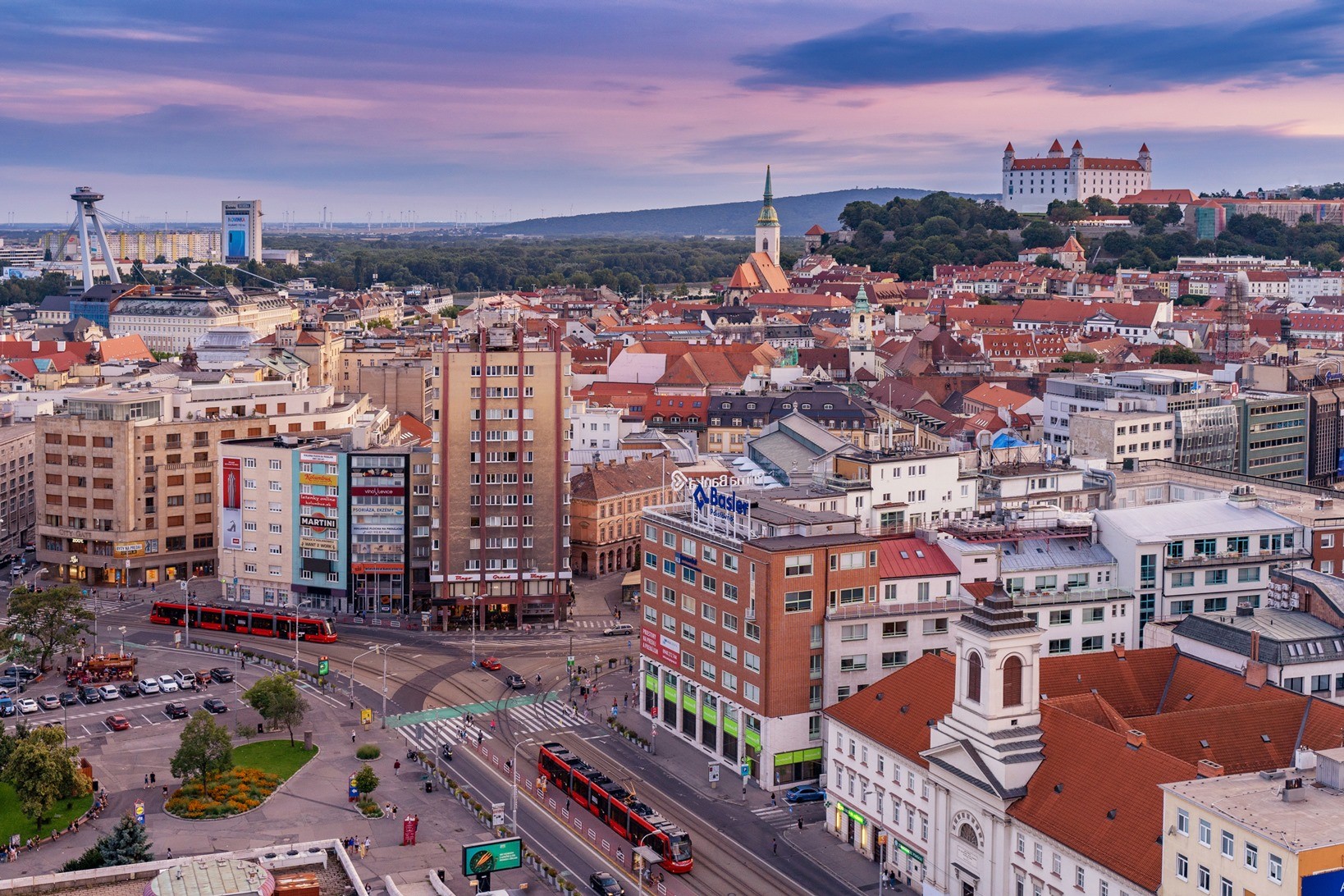 Pohľad na strechu obchodného domu na Kamennom námestí a blízke okolie: