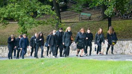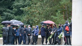 Príchod smútiacich hostí do areálu miesta poslednej rozlúčky:
