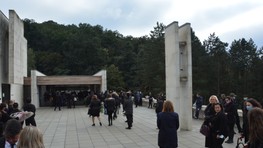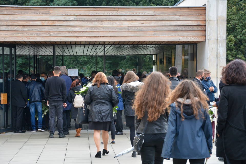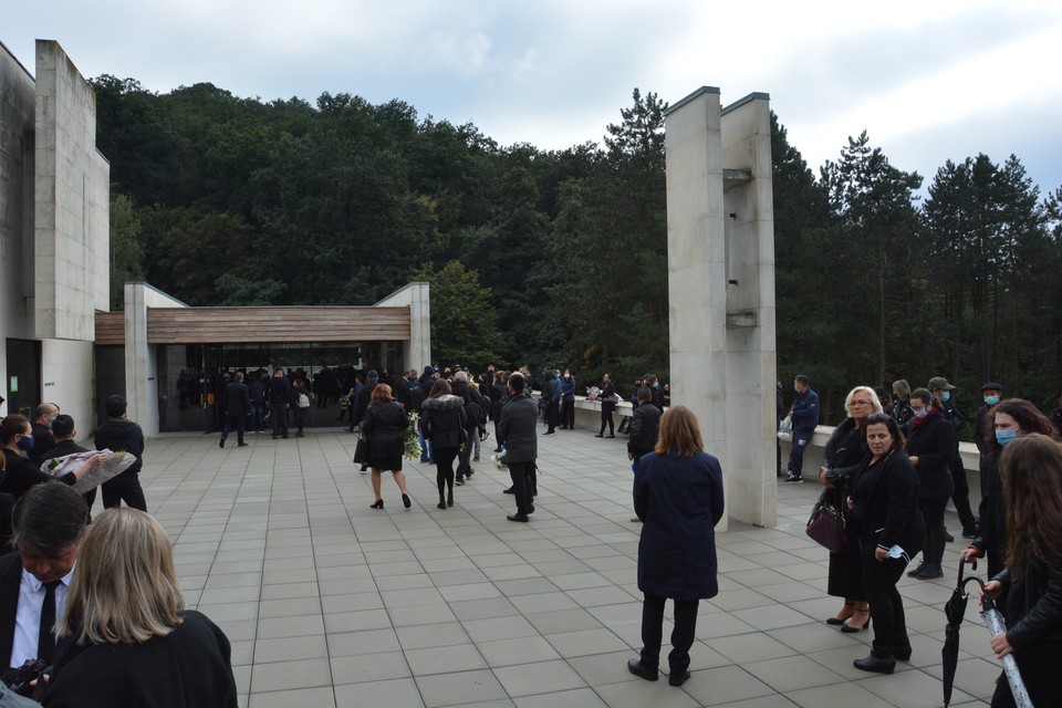 Na terase pred obradnou sálou bratislavského krematória sa napokon zhromaždili stovky ľudí: