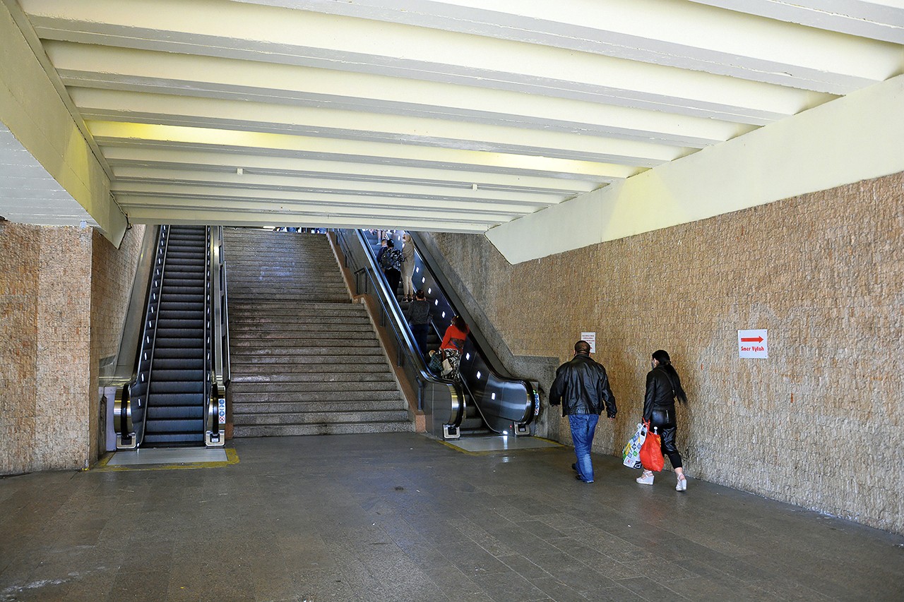 Po vystúpení z električky treba vystupovať do haly, následne zostupovať do tunela a potom opäť vystupovať k nástupiskám vlakov.