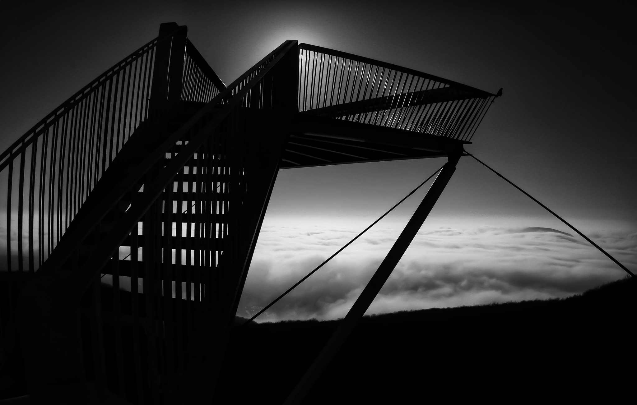 Z vyhliadkovej veže v Devínskej Novej Vsi bol pôsobivý aj nočný výhľad na hmlu nad Bratislavou...
