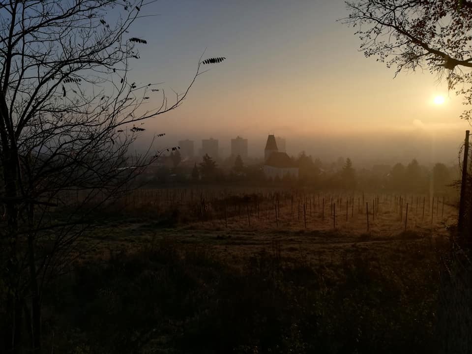 Les nad vinohradmi v uplynulých dňoch ponúkol takýto romantický pohľad na račiansky kostolík sv. Filipa a Jakuba.