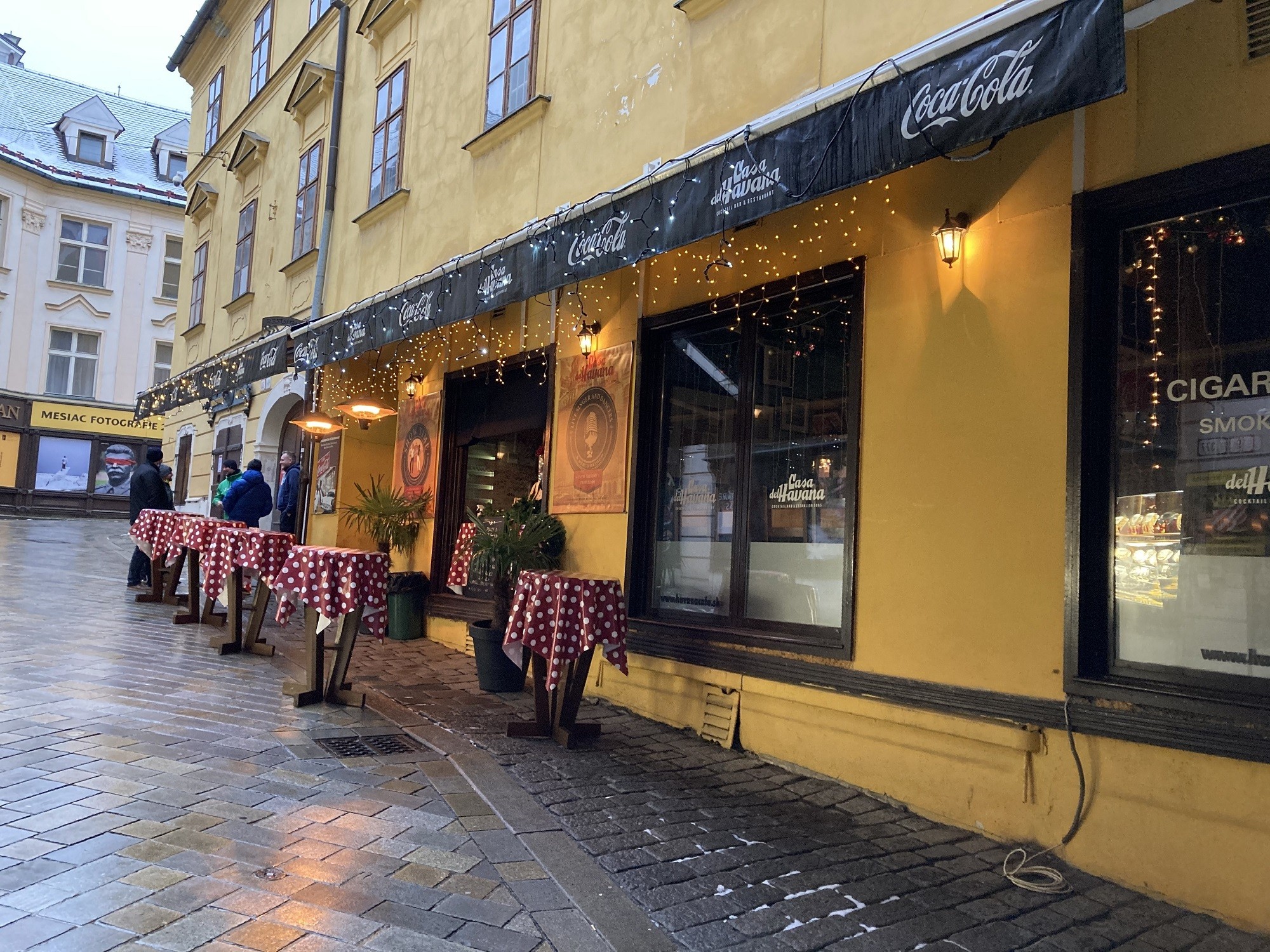 Na Michalskej ulici sme našli ďalšiu, tentoraz Korunovačnú zastávku, a to v coctail bare a reštaurácii Casa del Havana. Ak máte radi punč, tak tu si vyberiete: okrem klasického (3 €) je v ponuke punč Spice (4,90 €), punč Especial (4,90 €), punč Coruba (5,90 €). Môžete si dať aj Mojito Hot (4,90 €), prosecco (3,50 €) či pohár piva (2,20 €). Obslúžia vás cez okienko a drink si vychutnáte postojačky, pri stolíku na ulici.
