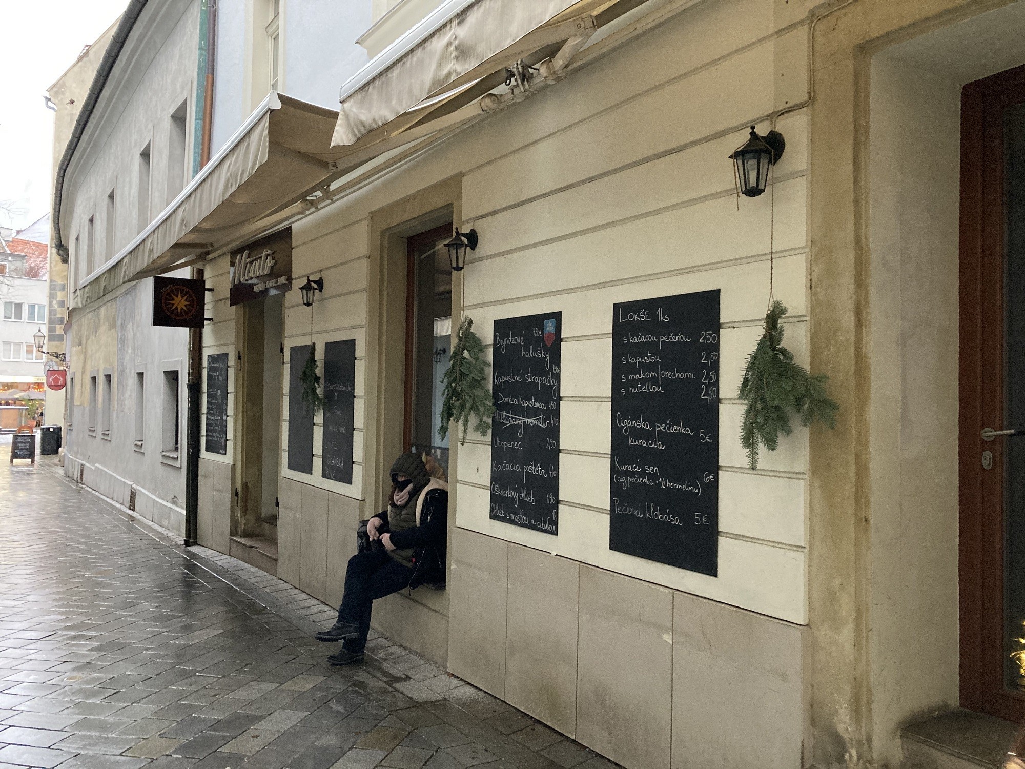 Na Bielej ulici neďaleko Františkánskeho námestia sme si chceli dať Kalorickú zastávku s ponukou domácej kapustnice (4,50 €), sladkých aj slaných lokší (2,50 €), cigánskej pečienky (5 €) či pečenej klobásy (5 €), okolo 14. hodiny však bol bar Meanto ešte zatvorený. Neskôr sme si na FB stránke podniku prečítali, že otvorené majú od stredy do soboty od 15. do 22. hodiny.