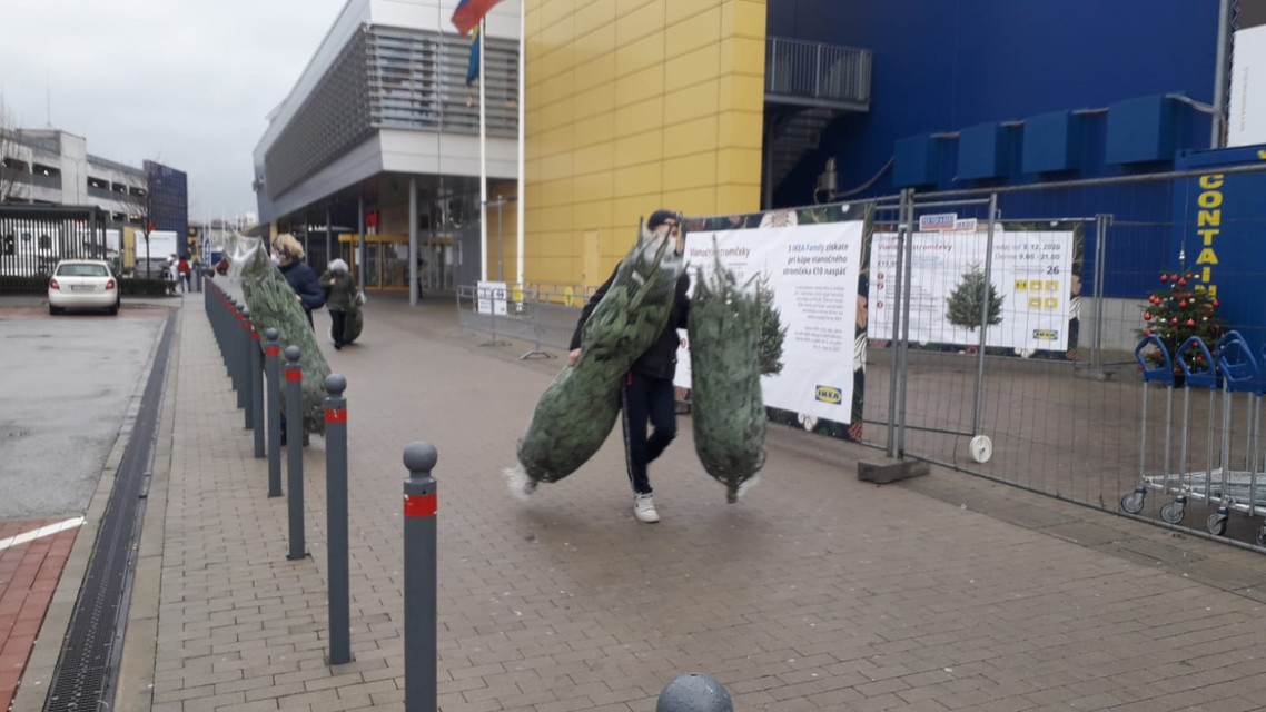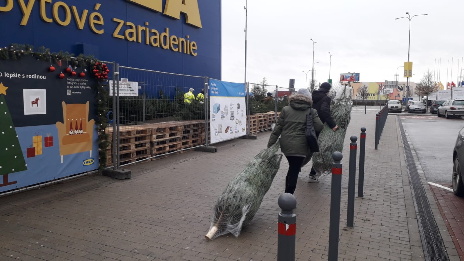 Návštevníci známeho švédskeho obchodu zameraného na nábytok a domácnosť, ktorý sa nachádza na Ivanskej ceste, si možno všimli, že na priestranstve medzi parkoviskom a budovou IKEA sa od 3. decembra začal predaj živých vianočných stromčekov. Pri našej návšteve bol o stromčeky dosť veľký záujem, pričom ľudí lákala najmä ich cena, a to 19,99 eura. V prípade, ak ste chceli orezať kmeň do dĺžky 6 až 12 cm, tak ste si ešte jedno euro priplatili a takisto ste si priamo na mieste mohli dokúpiť ešte aj nový stojan na vianočný stromček a to za 13,99 eura.