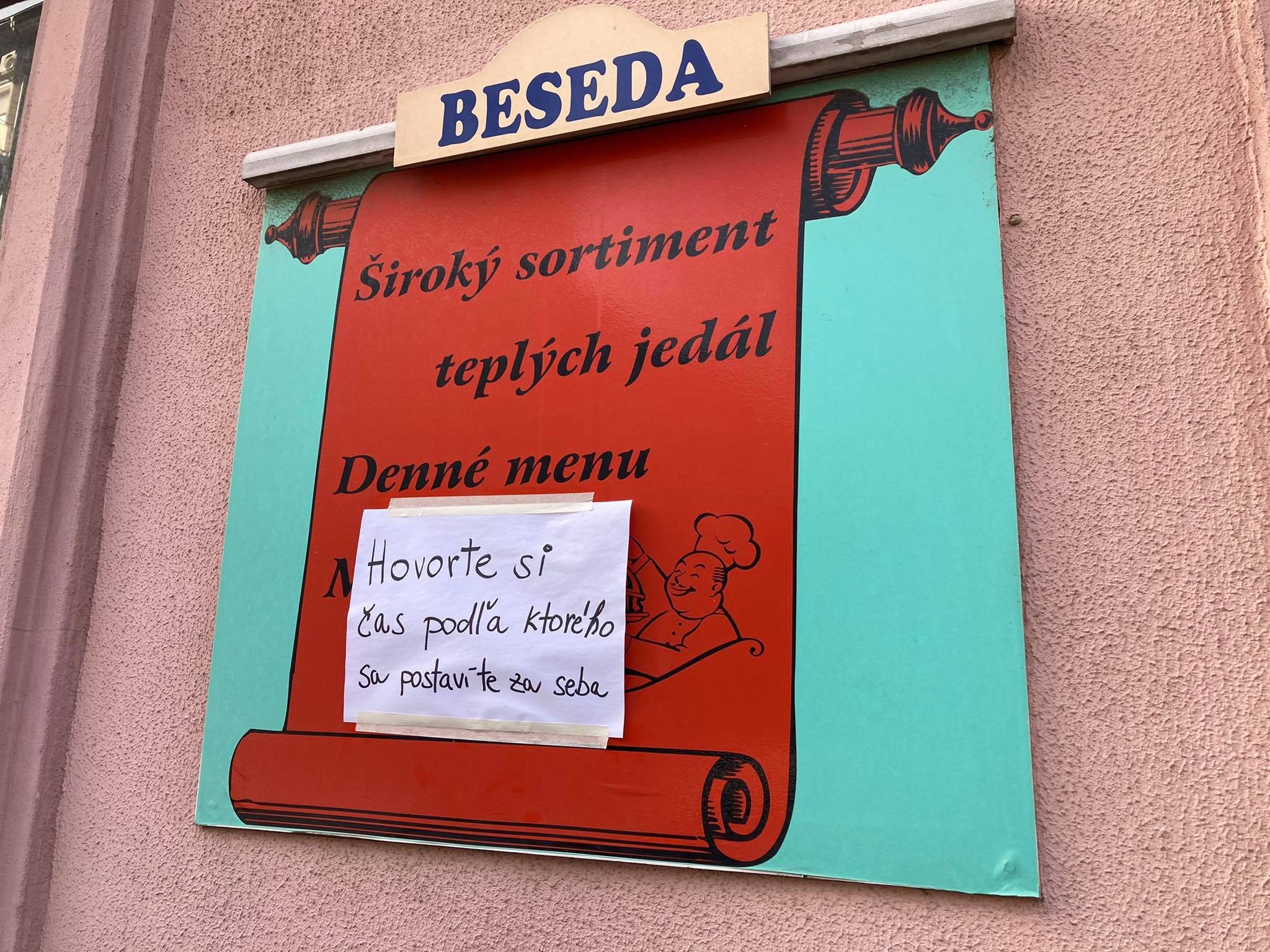 Jeden zo štamgastov sa svojim priateľom na sociálnej sieti tento týždeň posťažoval prostredníctvom svojho príspevku na sociálnej sieti v znení: "Čo je veľa, to je veľa. So Slovenskom je to už fakt bieda. Bratislavská reštaurácia a krčma Beseda, ktorá prežila prvú republiku, slovenský štát, socializmus aj "zamatovú" revolúciu, už nefunguje ani ako výdajné miesto navarenej stravy. Urobili z nej odberné miesto Covidu-u. Akurát včera som to zistil a priznám sa, že je to ťažké rozdýchať."