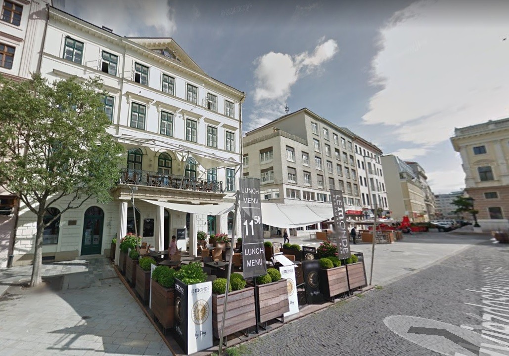 Strategická poloha umožňovala návštevníkom sediacim na terase parádny výhľad na historickú budovu SND či hotel Carlton oproti.