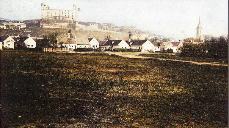 Na titulnej fotografii je jeden z najstarších fotografických záberov Bratislavy. Vznikol v roku 1870 na území Petržalky. Určite ste bez problémov identifikovali bratislavský hrad i Dóm svätého Martina v pozadí. Vpredu sú rodinné domy, ktoré boli neskôr zbúrané.