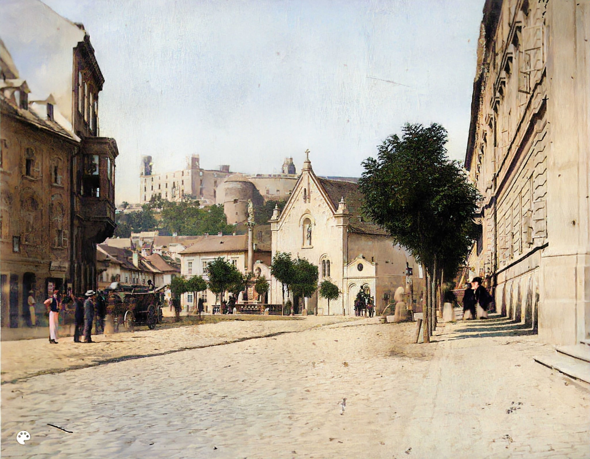 Aj keď je táto historická fotografia kolorizovaná, tak sa priestranstvo, ktoré sa dnes volá Župné námestie za posledných 200 rokov príliš nezmenilo. Pribudli na nej električkové koľaje smerom cez Kapucínsku na tunel a zmizla studňa, ktorú môžete vidieť na zábere vpravo pred stromoradím. "Pri čistení tejto studne na Župnom námestí zomreli v roku 1926 dvaja zamestnanci bratislavskej vodárne a pri pokuse o ich záchranu aj mestský hasič z povolania Karol Schmidt. Na Radlinského ulici mal kedysi pamätnú tabuľu. Karol Schmidt je pochovaný na Ondrejskom cintoríne. Na pohrebe sa zúčastnilo temer celé mesto – odhadom 35 000 ľudí," napísal do diskusie k tejto snímke pán Ján Šefc na FB stránku Bratislava na starých fotografiách.