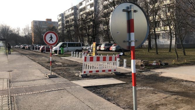 Rekonštrukcia cyklochodníka na Ružinovskej ulici - stav začiatkom marca.
