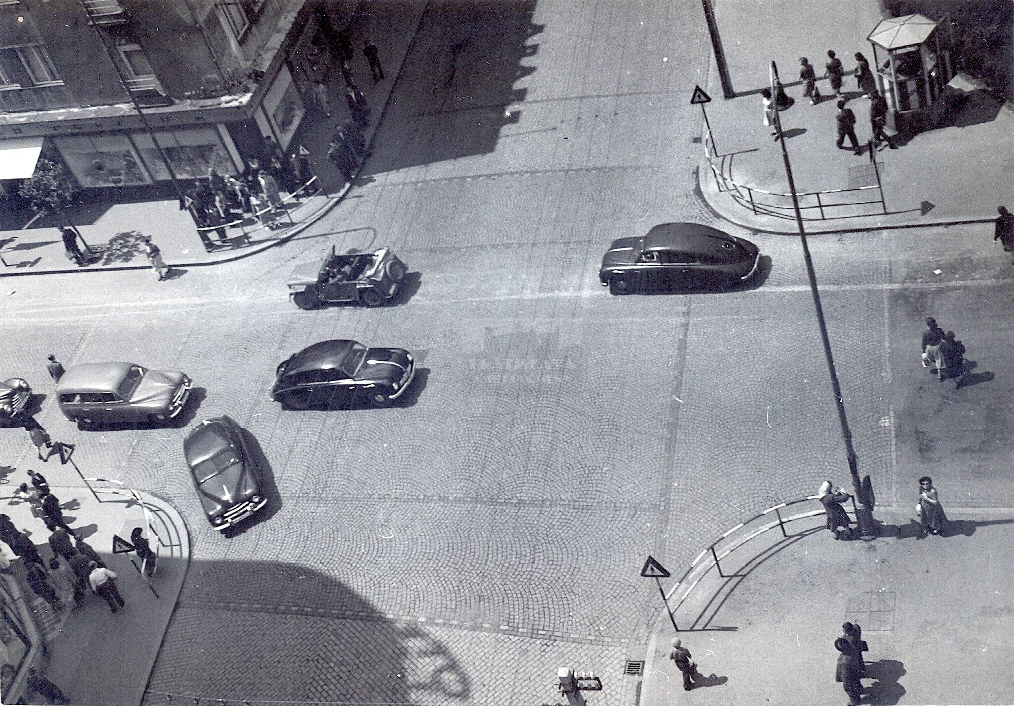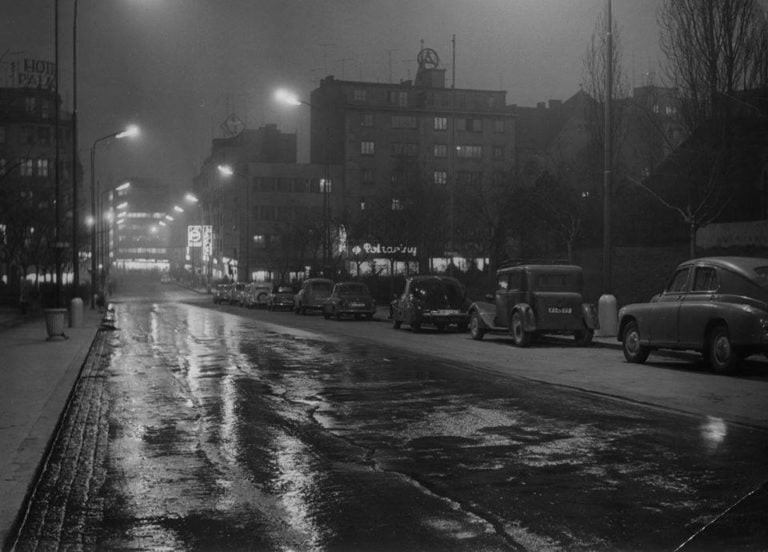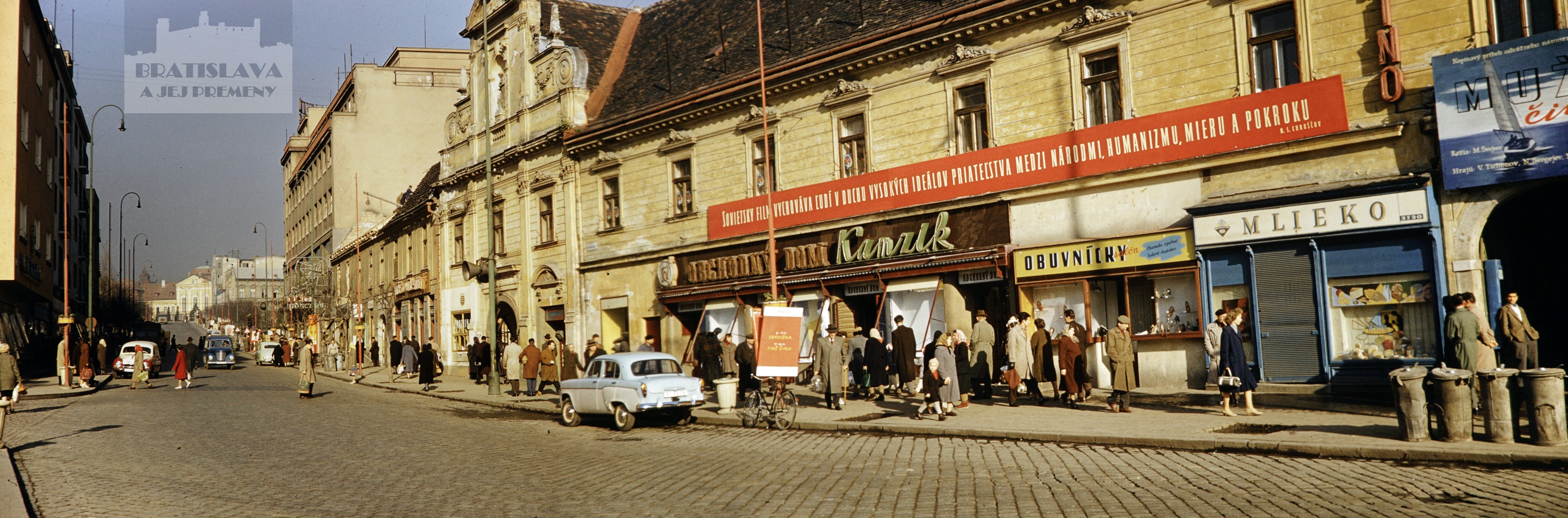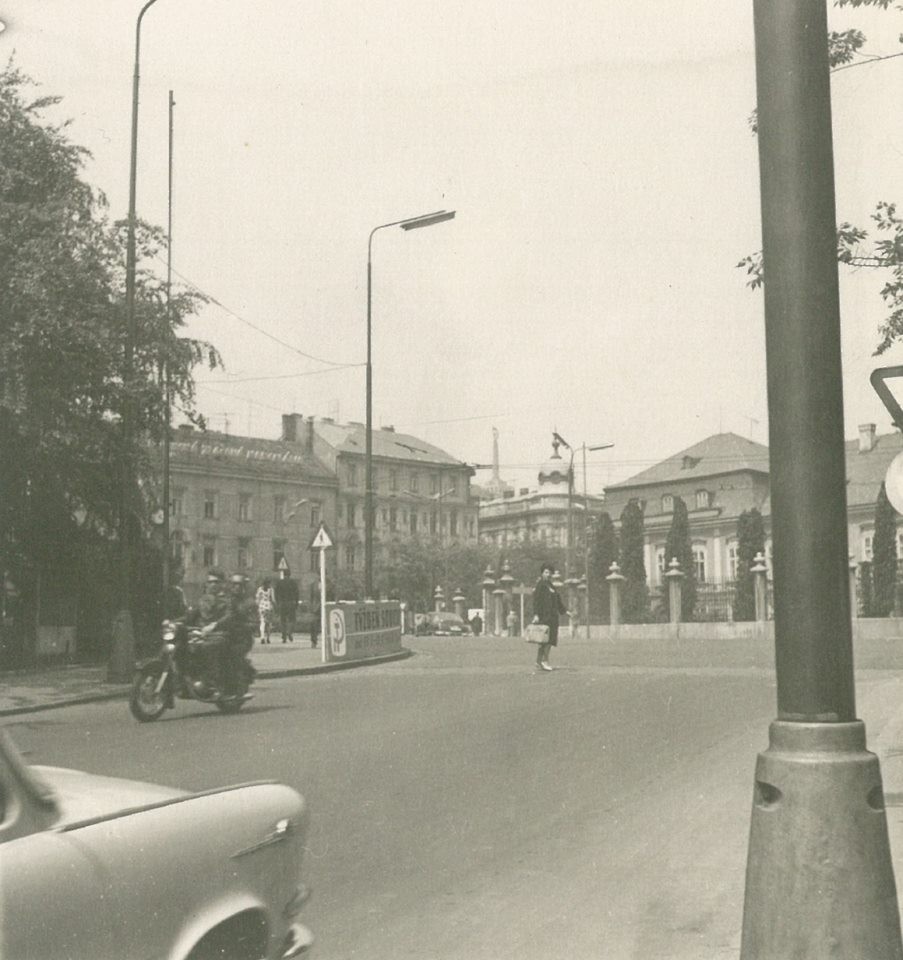 Na tejto snímke je už Poštová ulica rozšírená. V popredí môžete vidieť sochu Stalina, ktorá tu bola v rokoch 1945 až 1962 a v pozadí vežu kostola Panny Márie Snežnej na Kalvárii, ktorá bola zbúraná v roku 1959, aby neprekážala vo výhľade na pamätník Slavín.