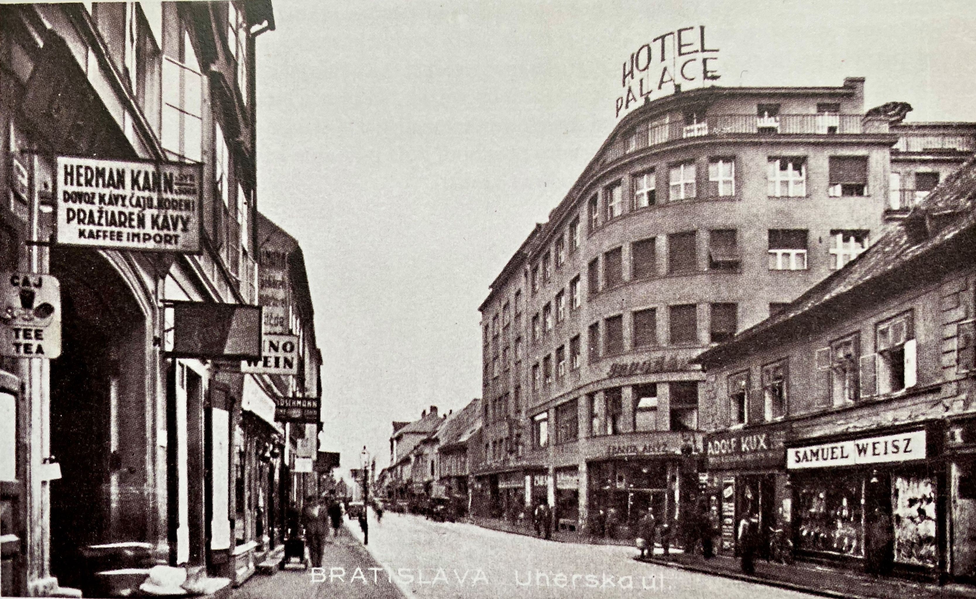 Zo súčasnej Obchodnej - vtedy Uherskej ulice sa ešte v roku 1933 na Poštovú dalo zahnúť pri hoteli Palace...