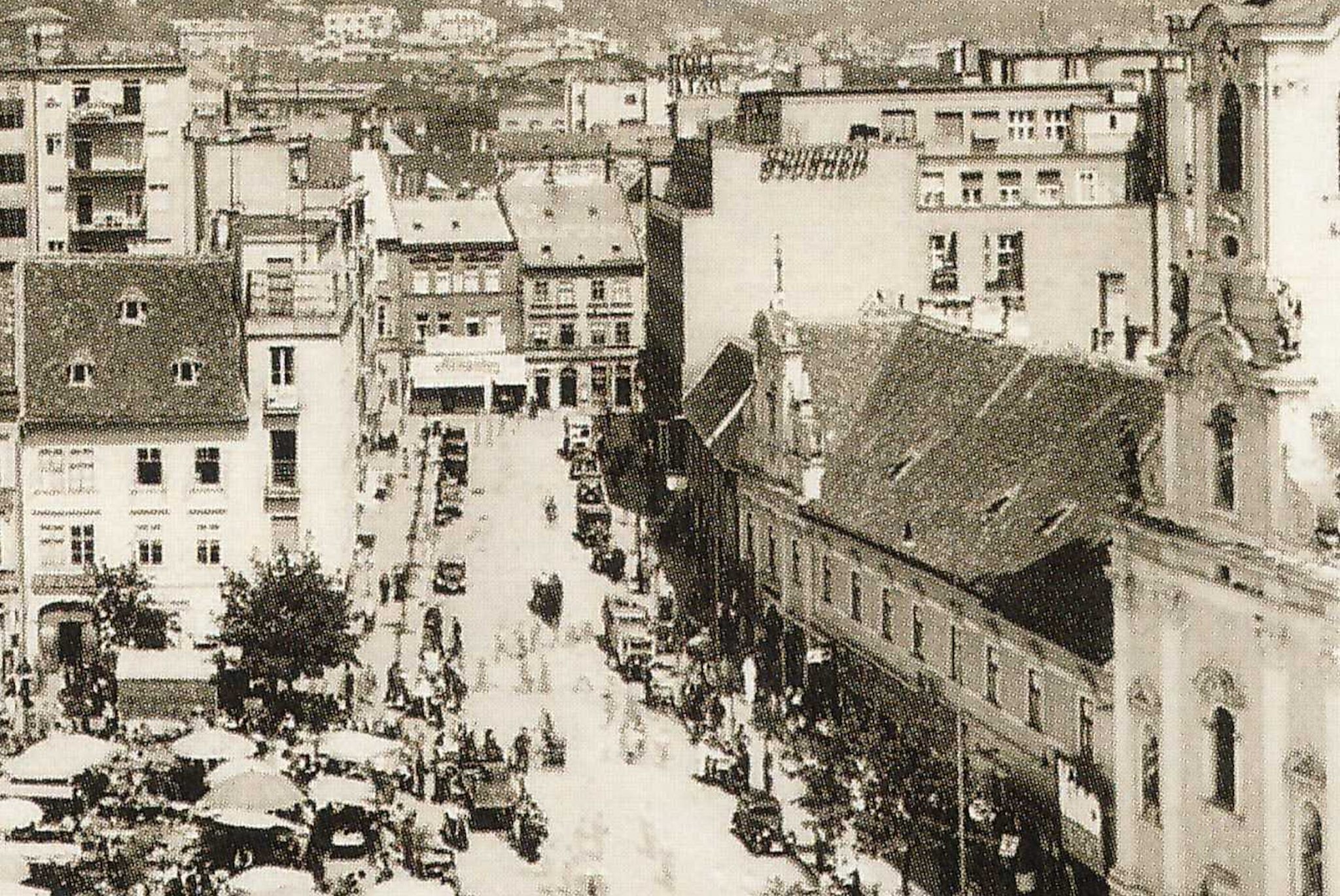 Poštová v roku 1936 od Námestia milosrdných, ktoré sa neskôr premenovalo na Trhové námestie...