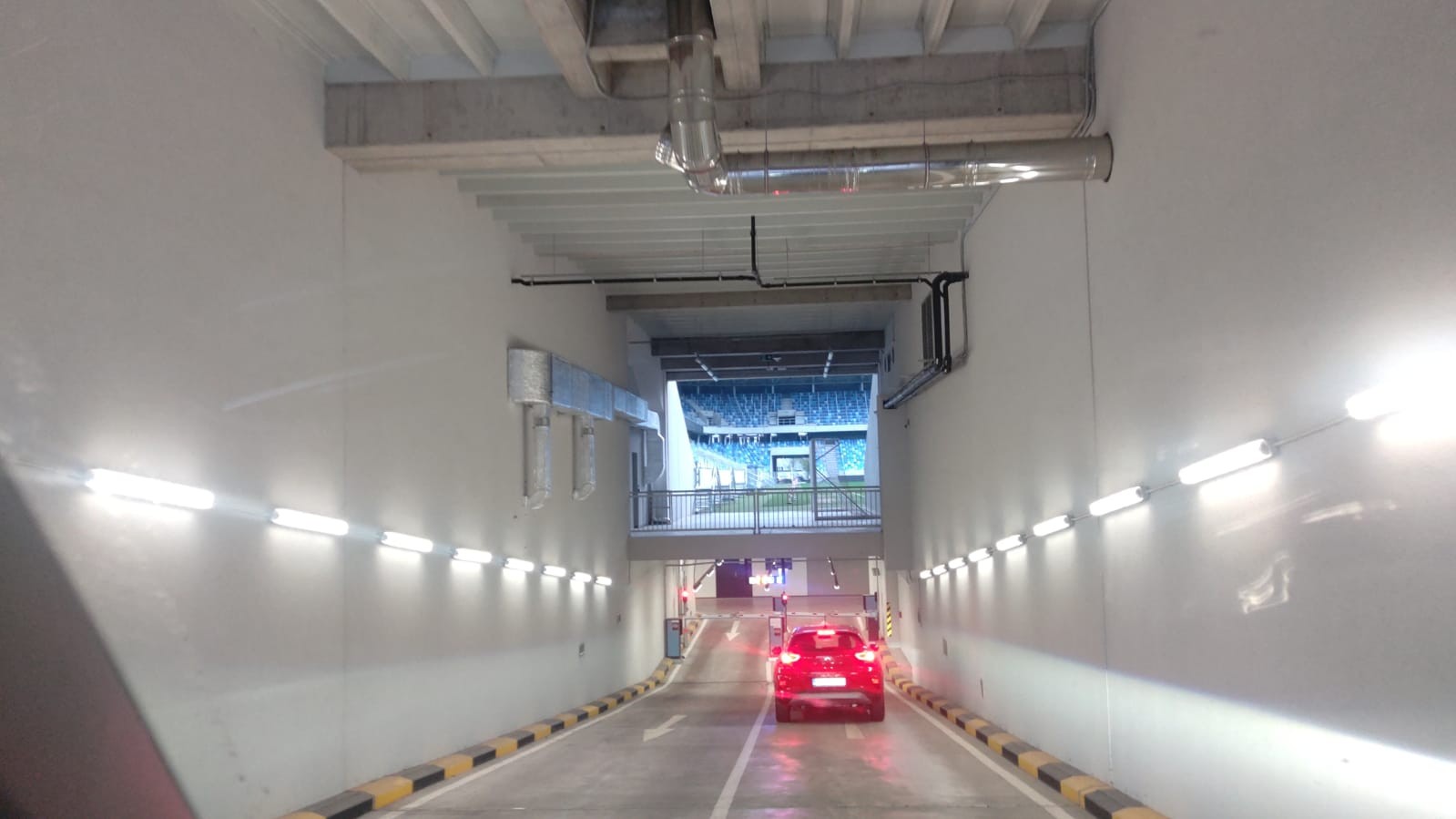 Pri vjazde do podzemných garáží na chvíľu uvidíte aj tribúny Tehelného poľa...