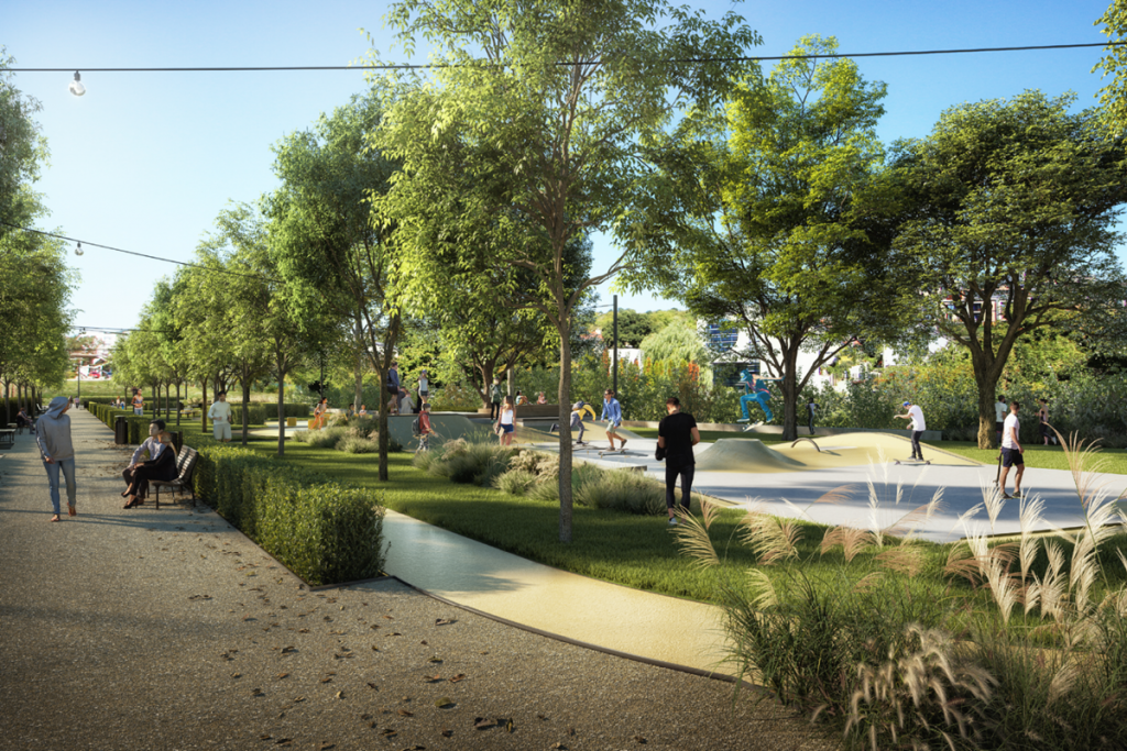 Parkovú časť so sakurovými stromami doplnia trvalkové záhony, kvalitné trávnaté plochy a tiež izolačná zeleň v podobe kríkov, ktoré zachytia hluk alebo prach od cesty. Výrazným prvkom bude dažďová záhrada, ktorá bude vodu v území zadržiavať a v období sucha postupne uvoľňovať do svojho okolia. Cena kompletnej realizácie, to znamená parku aj skateparku a športovísk, kde súčasťou obnovy bude nový mobiliár aj osvetlenie na celej ploche, sa odhaduje na 393-tisíc eur.