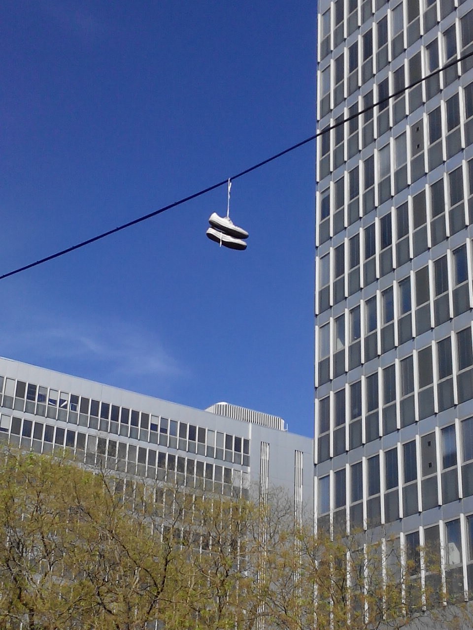 Vlastným očiam nechcel veriť pán Vladimír zo Starého Mesta, keď zbadal pri nedeľnej prechádzke na drôte, ktorý istí električkové vedenie prevesené biele tenisky. Nachádzali sa v priestore medzi budovou Ministerstva práce, sociálnych vecí a rodiny a zastávkou električiek na Špitálskej ulici. Nevšedný nález okamžite odfotografoval aspoň na mobil a následne zverejnil na sociálnej sieti...