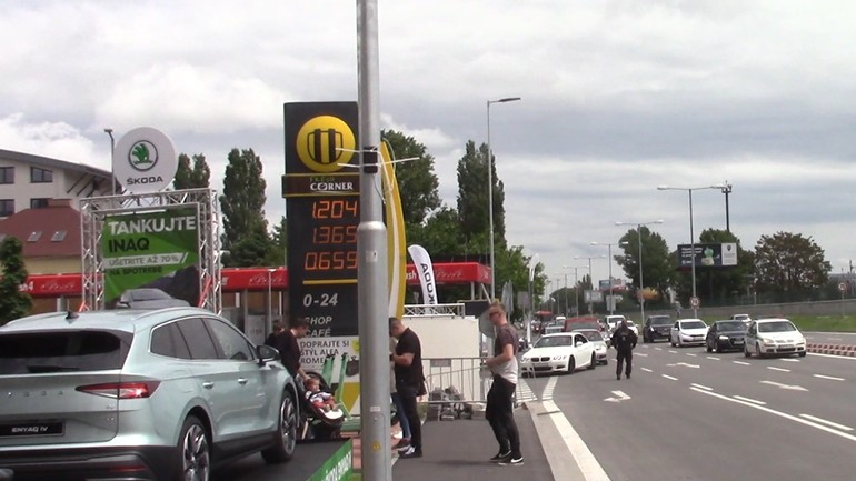 Až približne do vzdialenosti pol kilometra pred čerpacou stanicou pri najvyššej bytovke Bratislavy - Klingerke siahala kolóna áut, ktorých majitelia zaregistrovali reklamnú kampaň známej českej automobilky a bratislavskej rafinérie:
