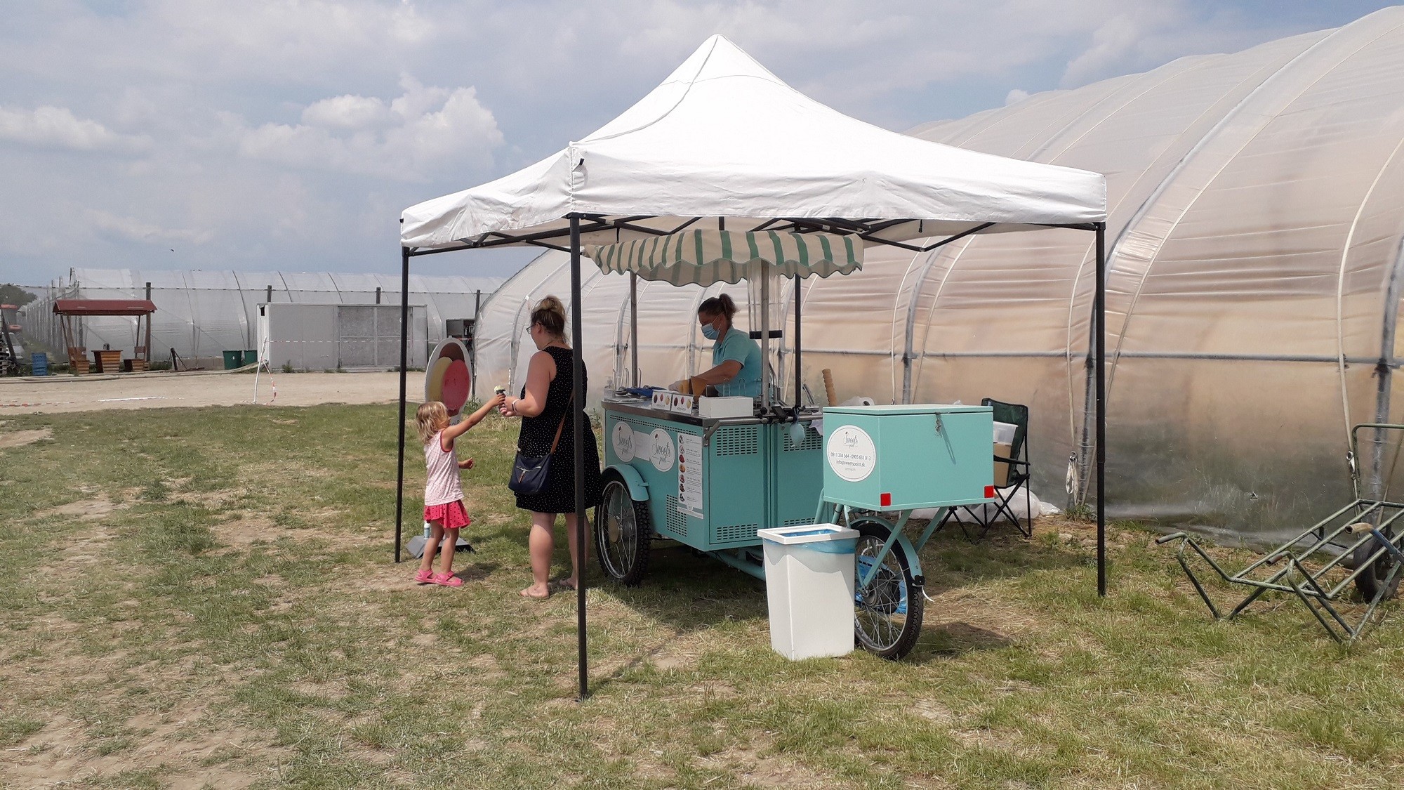 Všimli sme si, že veľa áut má práve bratislavské EČV, aj ďalší záujemcovia prišli z blízkeho okolia, z Pezinka či z Dunajskej Stredy... „No boli tu aj z iných miest, dokonca až z Kežmarku, a chodia tiež Číňania, nielen Slováci,“ tvrdila nám pani na poli, ktorá usmerňovala zberačov hrachu. Hrachové pole nájdete hneď na začiatku, zato jahodovisko je o poriadny kus ďalej. Čerstvo nazbierané sladké ovocie však mnohým ľuďom za to stojí, na pole smerovali starší aj mladší, tiež rodiny s malými deťmi, ktoré si počas cesty vychutnávali zmrzlinu – aj tá je v ponuke.