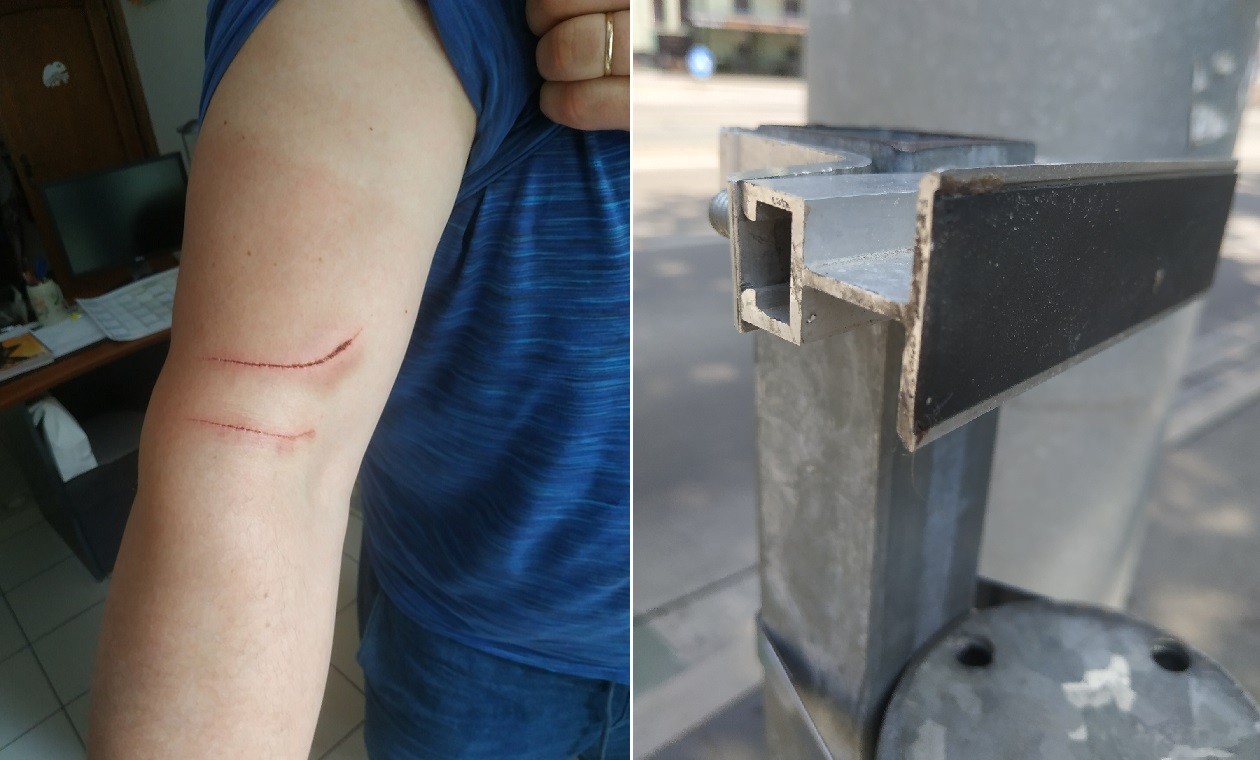 Redaktor webu banoviny.sk sa bol pozrieť na mieste, ktoré uviedol cyklista, aby sme mali lepšiu predstavu o tom, v čom je nebezpečné a ako asi mohlo k úrazu dôjsť. Stĺpik, na ktorom je tlačidlo na "zelenú" pre cyklistov sa nachádza medzi cestičkou pre cyklistov a stĺpom verejného osvetlenia. Vysoký je asi 100 až 110 centimetrov a pravdou je, že sa na jeho vrchu nachádza aj kovová časť s ostrými hranami, o ktoré by sa cyklista mohol poraniť pokiaľ by sa o nich v rýchlosti oškrel či už rukou alebo skôr nohou.