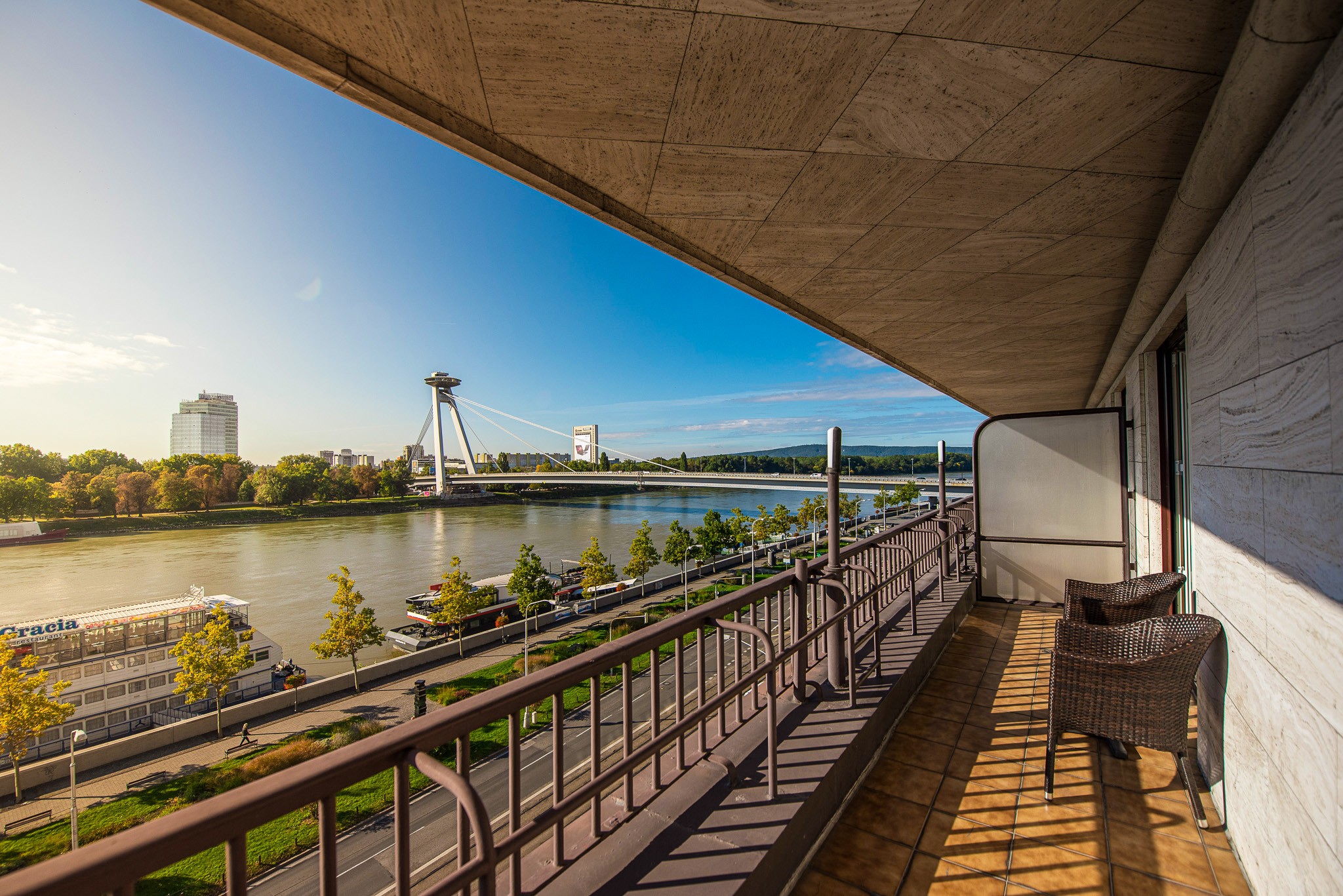 Súčasným návštevníkom hotela sa už naskytuje takýto výhľad na Dunaj a Most SNP...