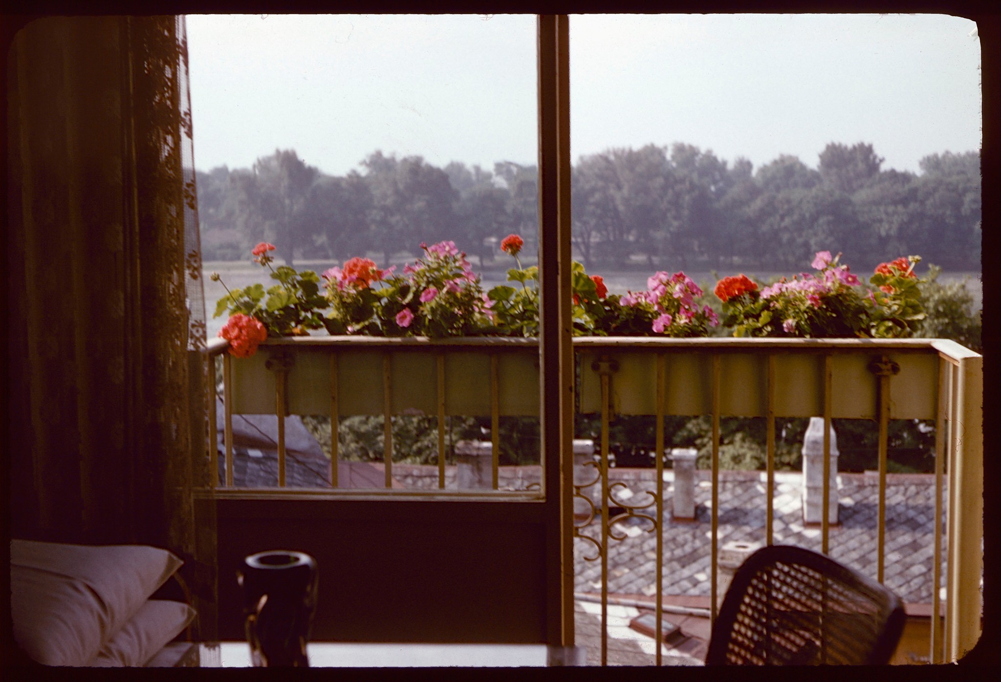 V niektorých izbách boli len okná, v iných aj malé balkóniky s nasadenými kvetmi a za nimi Dunaj.