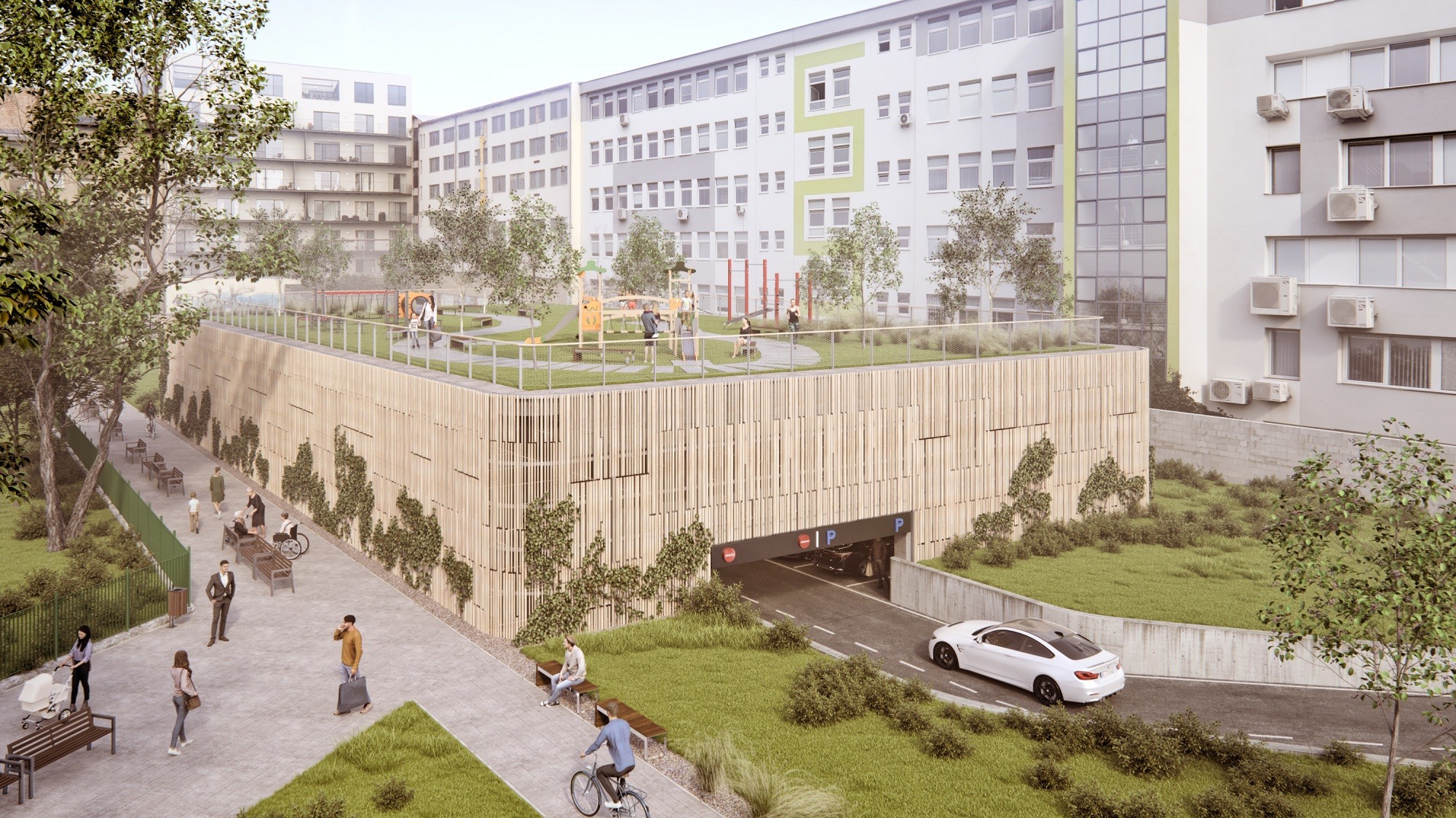 Návrh parkovacieho domu Unitas v mestskej časti Nové Mesto.