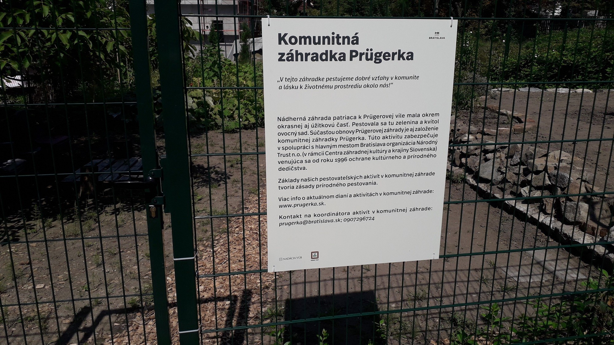 Záhrada vznikla na konci 19. storočia, keď si Prüger-Wallnerovci postavili vilu na severnom konci Havlíčkovej ulice v Starom Meste, ktorá stojí dodnes. Členitý terén upravili v okolí vily ako okrasnú záhradu v prírodno-krajinárskom štýle, zvyšná časť pozemku slúžila ako úžitková záhrada. Po tom, ako Prügerovci odišli do Anglicka, záhrada začala pustnúť. Z pôvodných záhradných úprav sa nezachovalo takmer nič, okrem niekoľkých mohutných stromov, zvyškov schodiska, skleníkov a budovy kotolne. Keď sem prídete dnes, nájdete tu hracie prvky pre deti, prírodný mobiliár, drevené chodníčky, aj informačné tabule o rastlinách a živočíchoch, ktoré tam žijú. Viac sa dočítate na www.prugerka.sk.