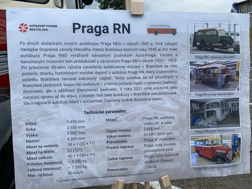 Autobusy Praga RN vyrábal národný podnik Auto Praga v rokoch 1933 až 1953 a Dopravný podnik Bratislava ho získal pred štyrmi rokmi od súkromného majiteľa a komplexne ho zrekonštruoval až do súčasnej podoby.
