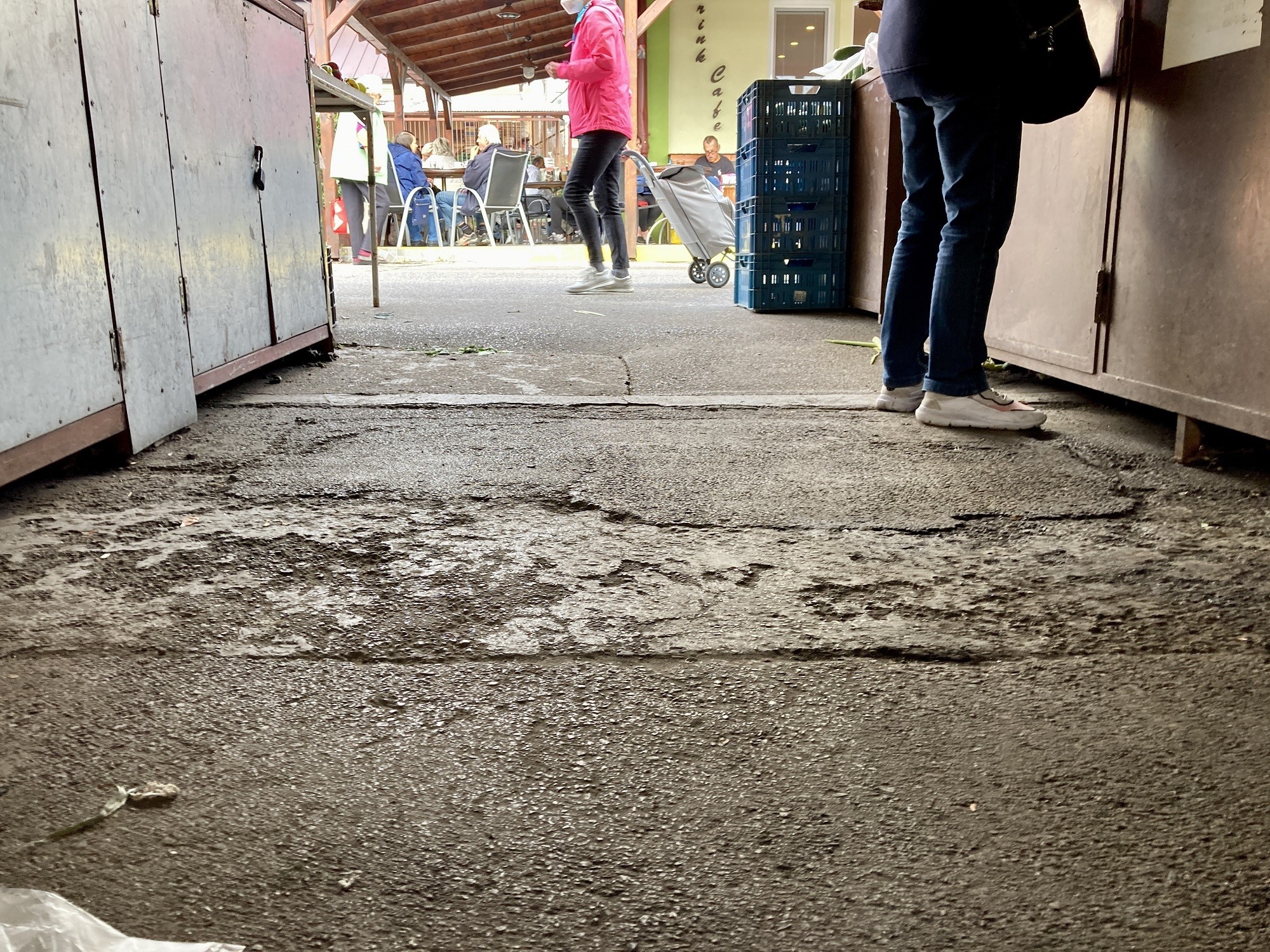 Predajcovia nám vysvetľovali, čo sa malo urobiť už dávno: Eriku z Bratislavy napríklad hnevala rozbitá ulička pri jej stánku, Anikó zo Zlatých Klasov a ďalší sa sťažovali na deravú strechu, cez ktorú im v daždivých dňoch prší na tovar. Privítali by tiež umývateľnú dlažbu okolo stánkov a vyššie umiestnenie stánkov, aby tam bolo viac svetla a priestoru... A keď potrebujú vodu, musia si ju nosiť zo studne. Viacerí však tvrdili, že ani nechcú prípojku, lebo by vraj veľa platili.