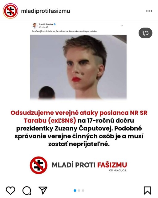 Sprevádzal ju relatívne nevinne vyzerajúci komentár: "Po včerajšom dni vieme, že máme na Slovensku novú topmodelku." Pričom bolo zrejmé, že poslanec Taraba nechal "špinavú prácu" na svojich podporovateľov, ktorých má na Facebooku vyše 41-tisíc. Niektorí si naozaj neodpustili nechutné až sprosté komentáre posmievajúce sa jej novému imidžu s chlapčenský účesom či celkovo znevažujúce jej súčasný výzor, ale väčšina diskutujúcich konanie poslanca, ktorý pred časom odišiel z poslaneckého klubu ĽSNS, odsúdila. Na Facebooku napokon reagovala aj prezidentka SR Zuzana Čaputová: "Útok na politika alebo političku cez jeho deti je politické dno. Poslanec Taraba by sa o moju dcéru nikdy nezaujímal, keby to nesúviselo s mojou funkciou. Ľudskej zlobe a hlúposti musím v živote čeliť, ale moje deti z toho vynechajte!"