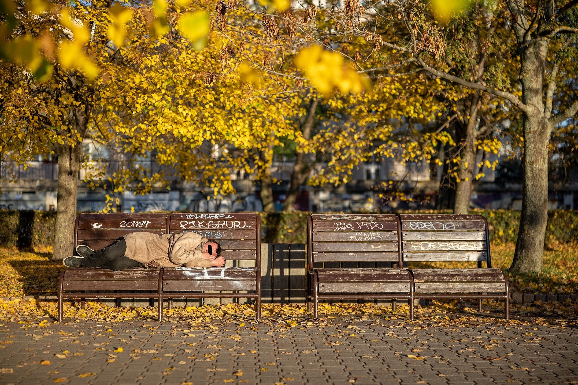 bezdomovec na lavičke