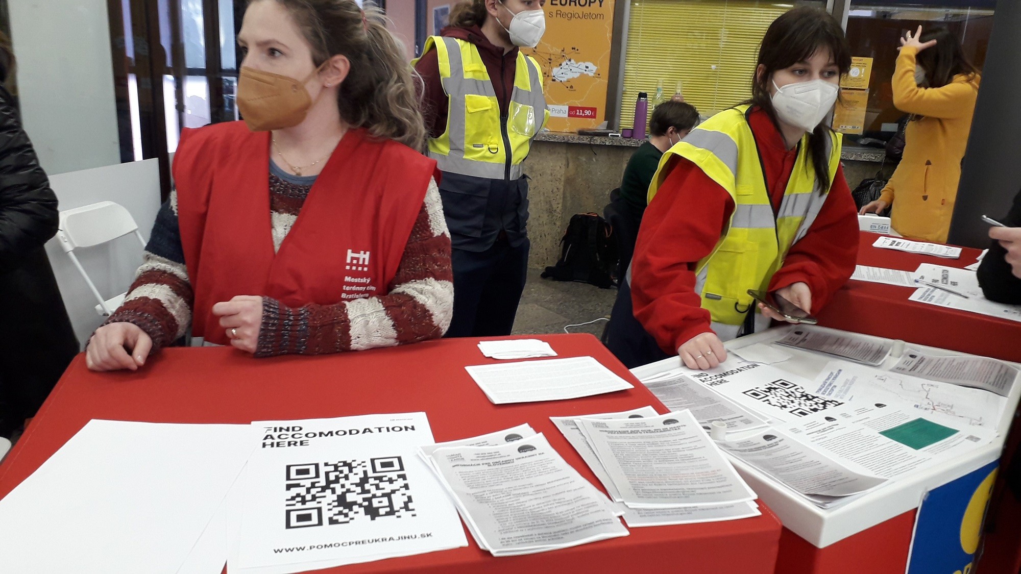 Vo vestibule Hlavnej stanice bol dnes krátko predpoludním pokoj, dobrovoľníci čakali na ďalší vlak z Košíc, ktorým mali prísť ľudia utekajúci pred vojnou na Ukrajine. Nachystali pre nich letáčiky s dôležitými informáciami, občerstvenie, takisto boli pripravení pomôcť pri riešení akútnych problémov vrátane ubytovania. Potrebovali ho aj Marija a Zarija, ktoré po strastiplnej ceste z rozbombardovaného Kyjeva prežili prvú noc v bezpečí vďaka pomoci Bratislavčana Jána.
