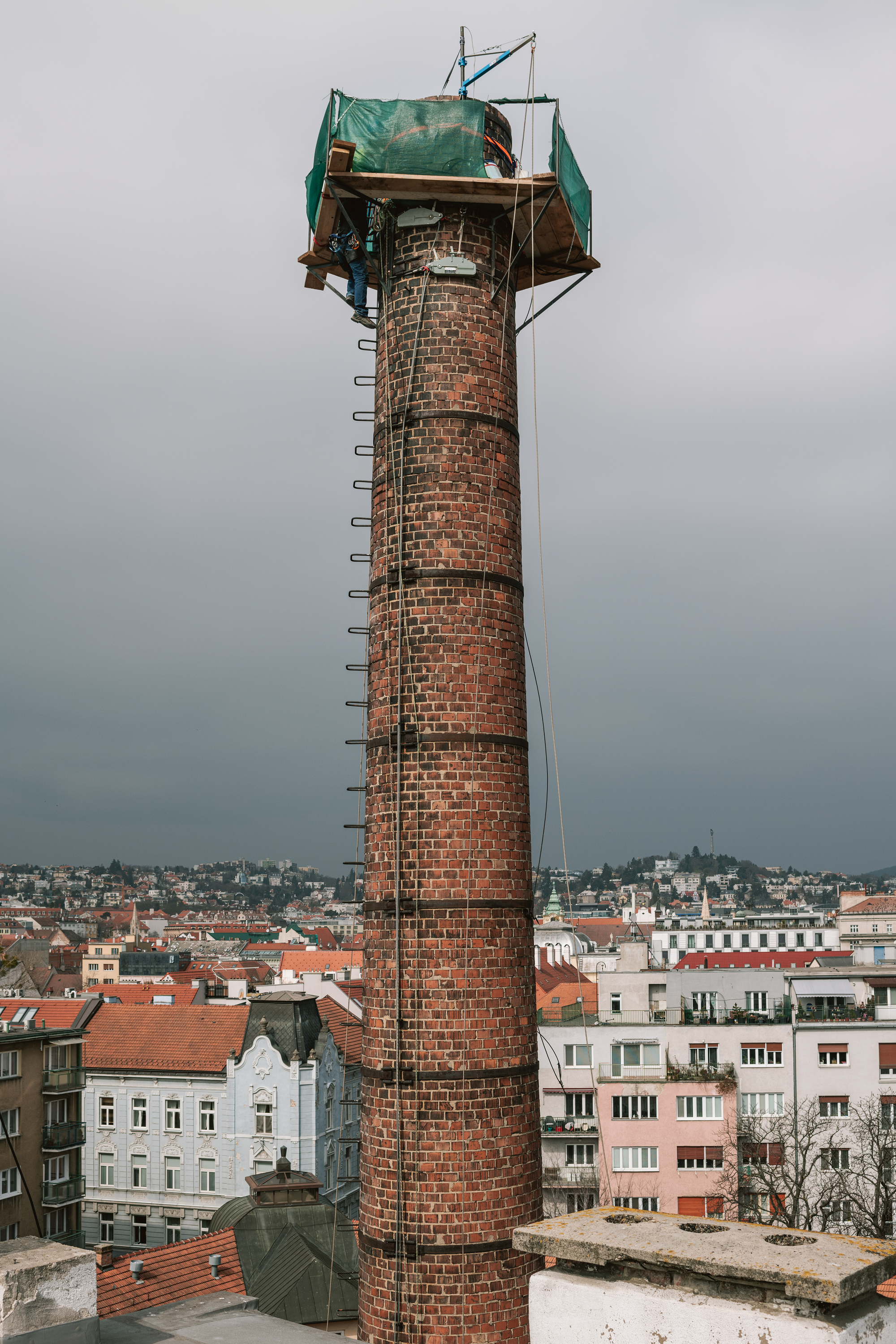 Súčasťou rekonštrukčných prác bola obnova spomínaného historického komína z roku 1914, kedysi najvyššieho objektu v Starom Meste. „Odobrali sme tehly z vrchnej časti komína, ktorá bola naklonená a hrozilo, že by sa časom rozpadla. Pri obnove sme použili pôvodné tehly komína a opravili sme aj kovové obruče, čím sa zabezpečí dlhodobá trvácnosť,“ spresňuje Bindics. Dnes už môžeme obdivovať komín v jeho plnej kráse.