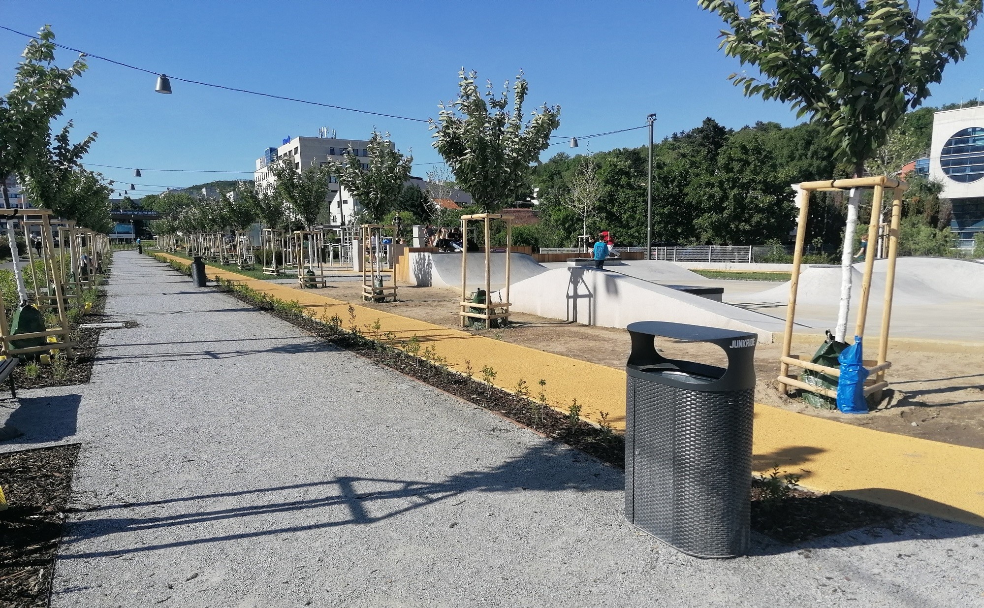 Nový multifunkčný park v Karlovej Vsi - samozrejme, stromy potrebujú čas, kým dorastú.