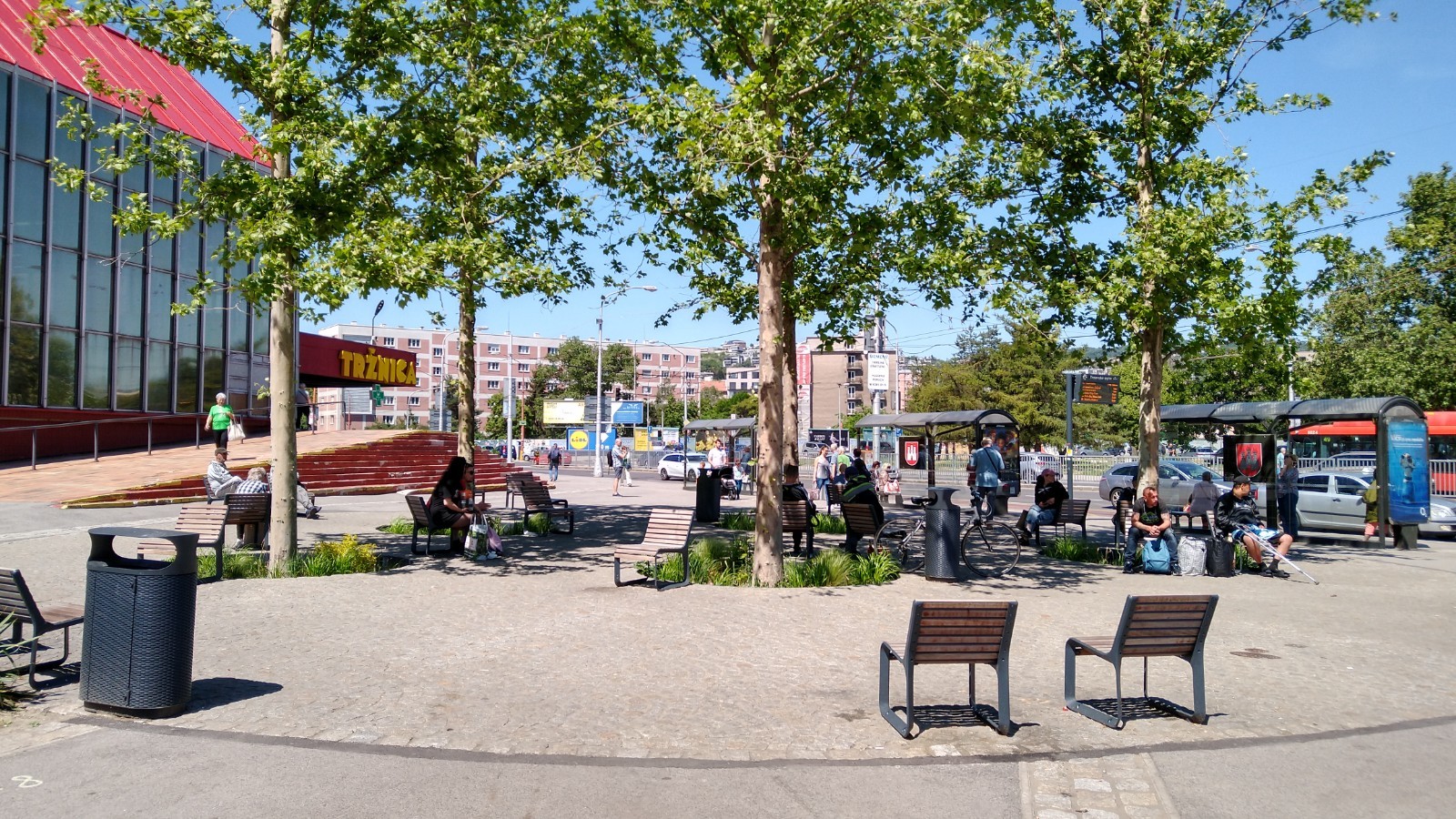 Pobyt pri Novej tržnici na Trnavskom mýte býval počas horúceho leta neznesiteľný. Chýbal tieň, takže ten, kto nemusel čakať na MHD, radšej sa odtiaľto rýchlo vzdialil.