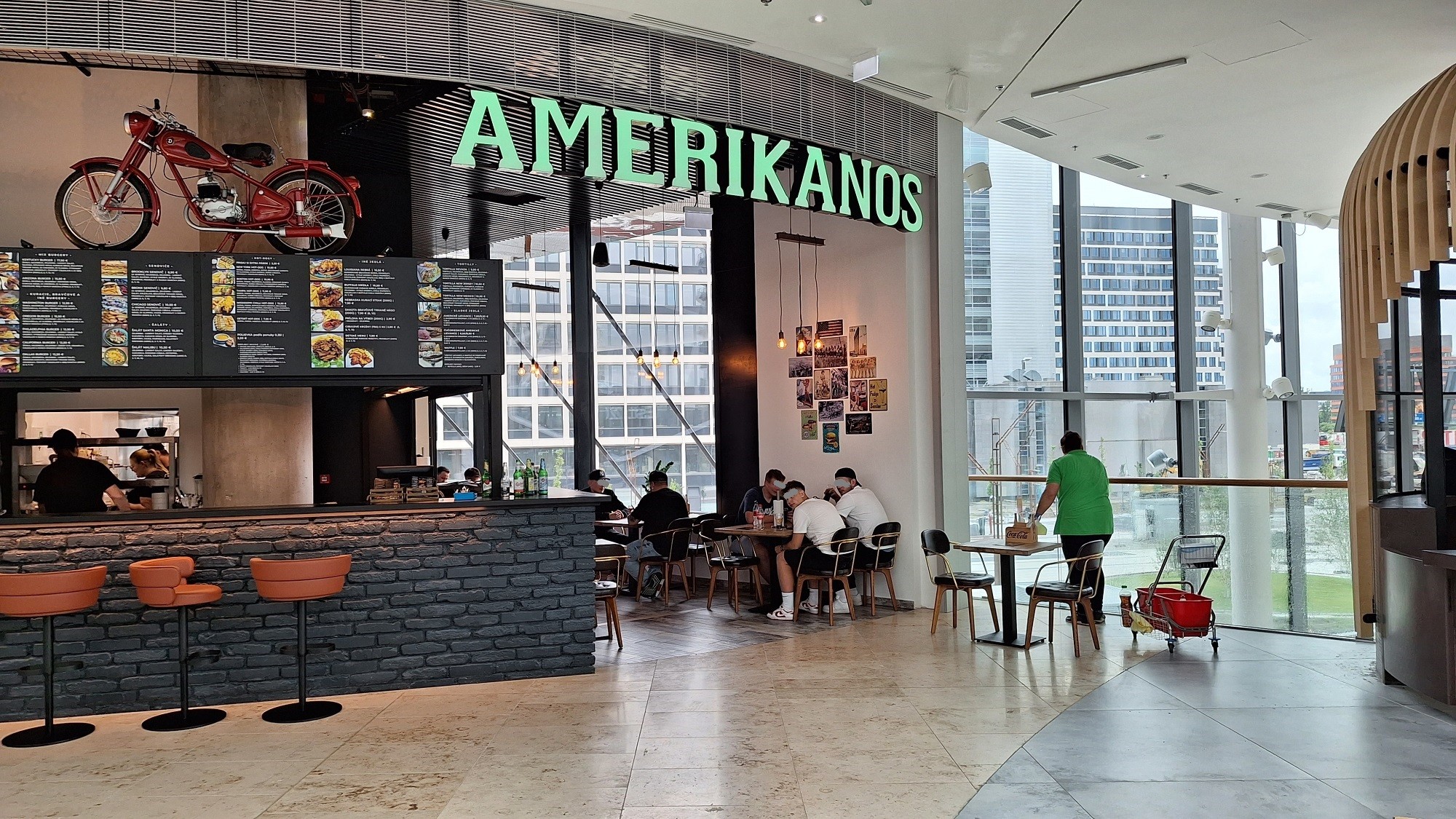 Na opačnej strane reštauračnej zóny zase objavíme Amerikanos - prevádzku s americkou kuchyňou, ktorá v pôvodnom foodcourte nebola. Aj v tomto bistre sa dá dobre najesť. V ponuke majú hovädzie i kuracie burgery, sendviče, hotdogy tortily, pričom pri každej jednej špecialitke si zrejme zacestujete aspoň v mysli na mape – kúpite tu napríklad Texas burger, ale tiež Alabama burger, Washington burger, California burger, Brooklyn sendvič, Chicago sendvič... Zaujali aj jedlá ako Louisiana rebrá či Buffalo krídla, ktoré podávajú s chrumkavými hranolčekmi, a tiež sladké lievance a wafle. Ak nie ste práve na diéte, doprajte si.