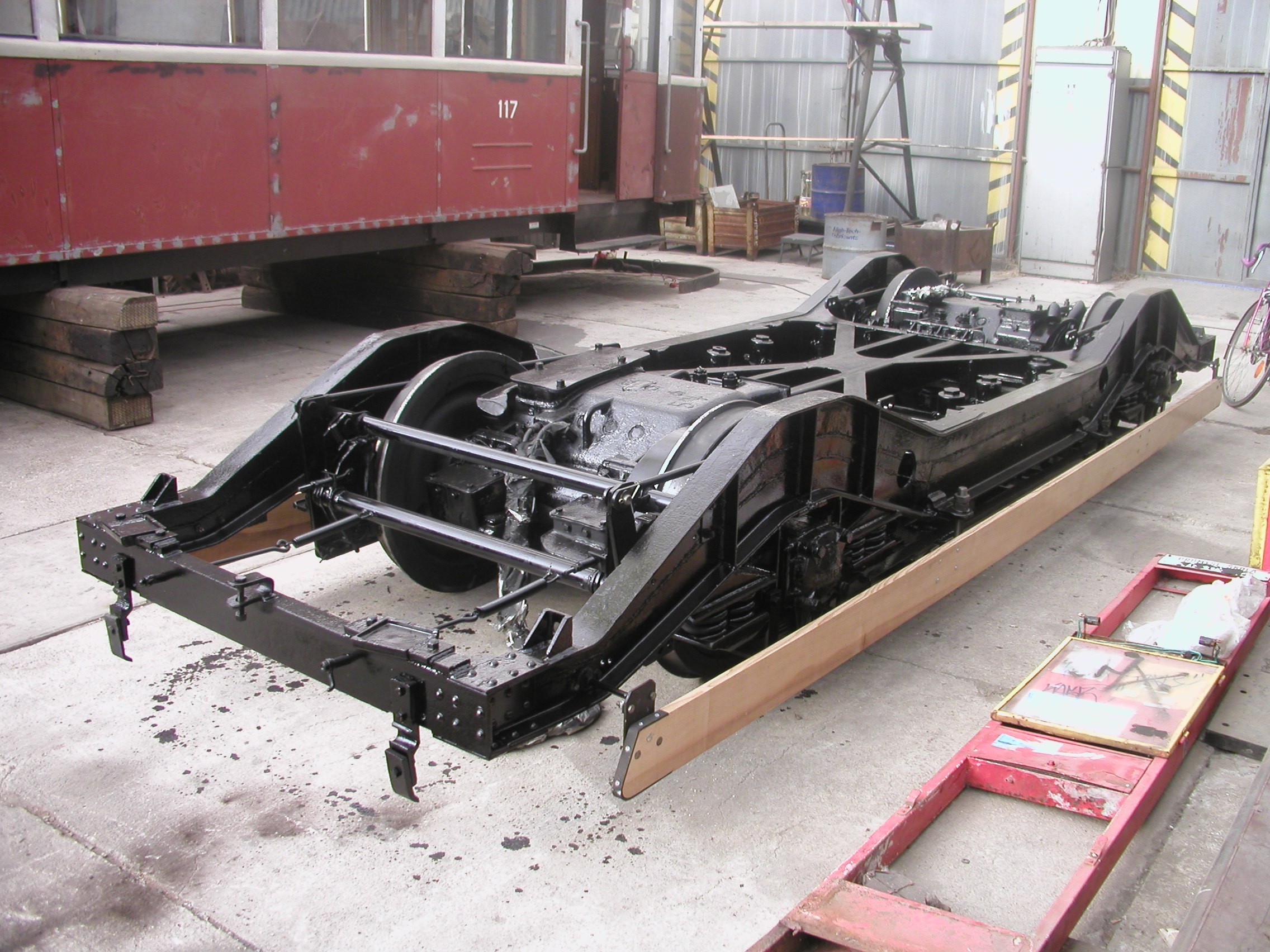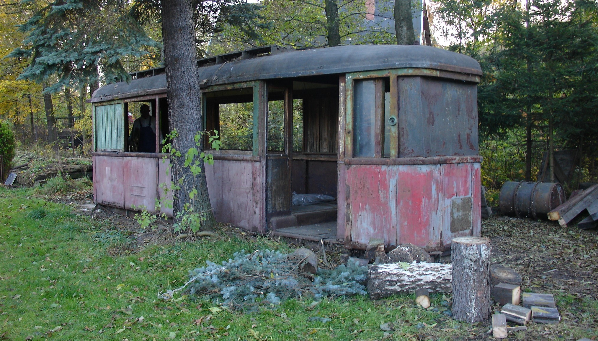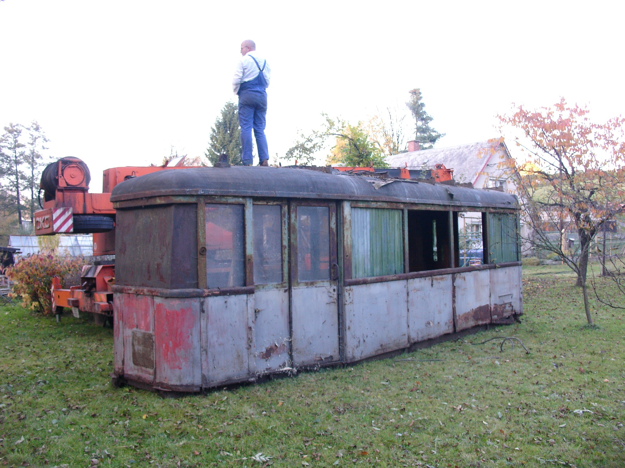 Torzo vozňovej skrine električky 6MT pre Bratislavu. Fotografia vznikla pri jeho záchrane 27. októbra 2005.
