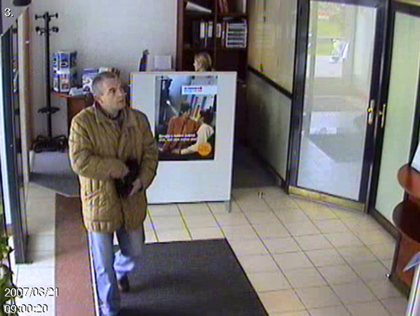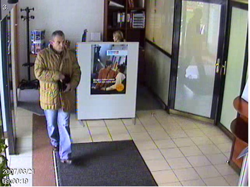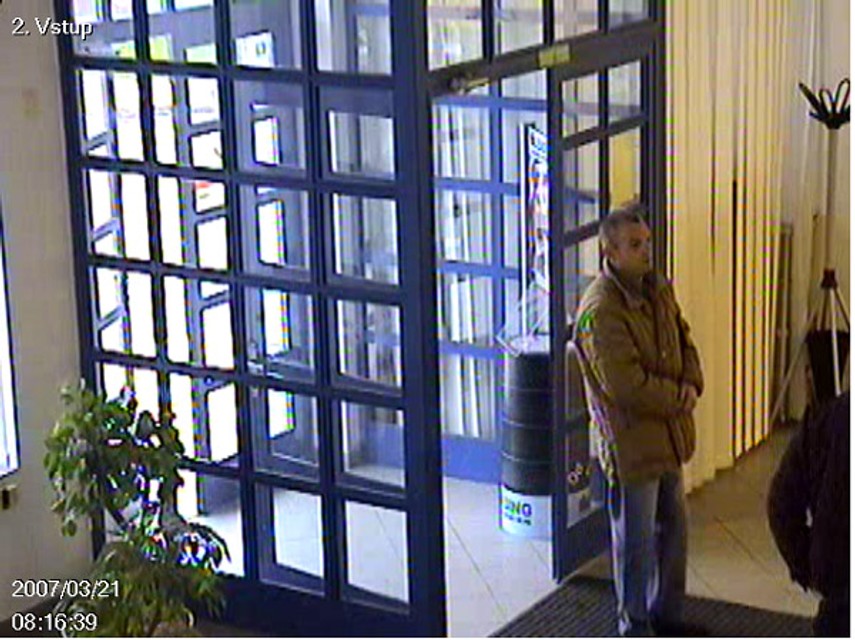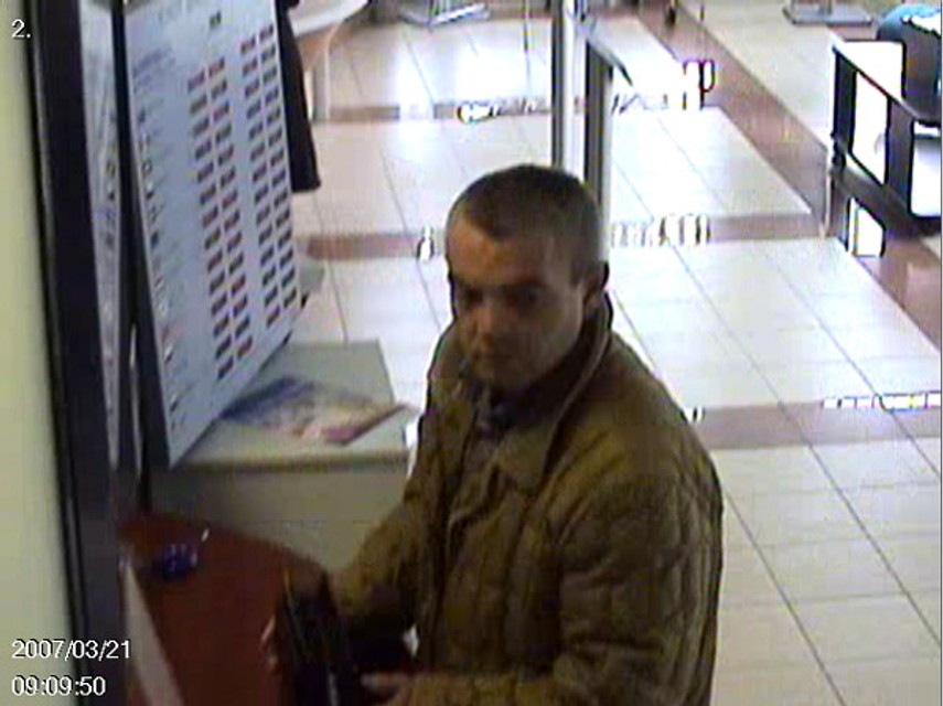 Polícia žiada verejnosť o pomoc pri zisťovaní totožnosti neznámeho muža na fotografií, ktorý 21. marca 2007 vybral na sfalšované doklady z pobočky banky na Račianskej ulici sumu 300 000 korún.