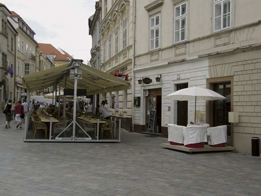 Malá letná terasa v dolnej časti Ventúrskej ulice by mala do konca mesiaca zmiznúť. Podľa pravidiel schválených staromestskou samosprávou tu nemá čo robiť.