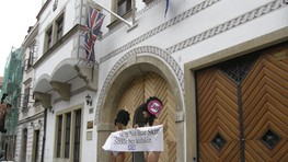 Protest mladých Britiek zhruba po desiatich minútach ukončil príslušník polície, keďže nemali na akciu povolenie.
