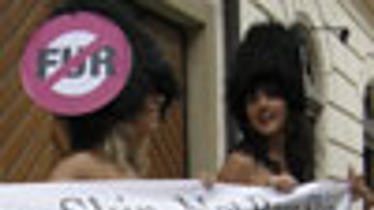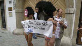Dve polonahé Britky protestovali dnes pred britským veľvyslanectvom v Bratislave proti zabíjaniu čiernych medveďov kvôli výrobe vysokých huňatých čiapok pre členov britskej Kráľovskej gardy.