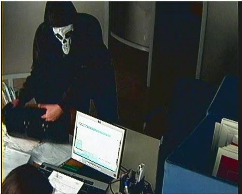 Agentúru SITA o tom informovala bratislavská policajná hovorkyňa Tatiana Kurucová. So zbraňou v ruke prepadol neznámy 40 až 45-ročný lupič banku aj na Račianskom mýte v Bratislave. Ukradol okolo 27-tisíc eur. Na hlave mal masku s filmu Vreskot, oblečené mal rifle a pruhovanú mikinu sivo-čiernej farby s hnedými pruhmi. Na hlave mal kapucňu a v ruke držal diplomatku.