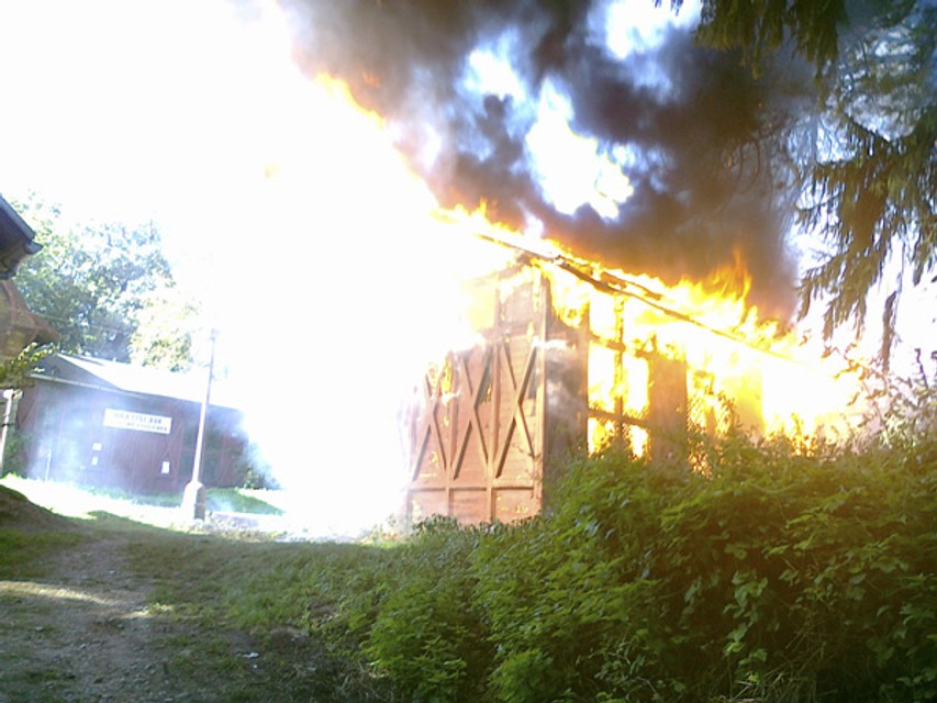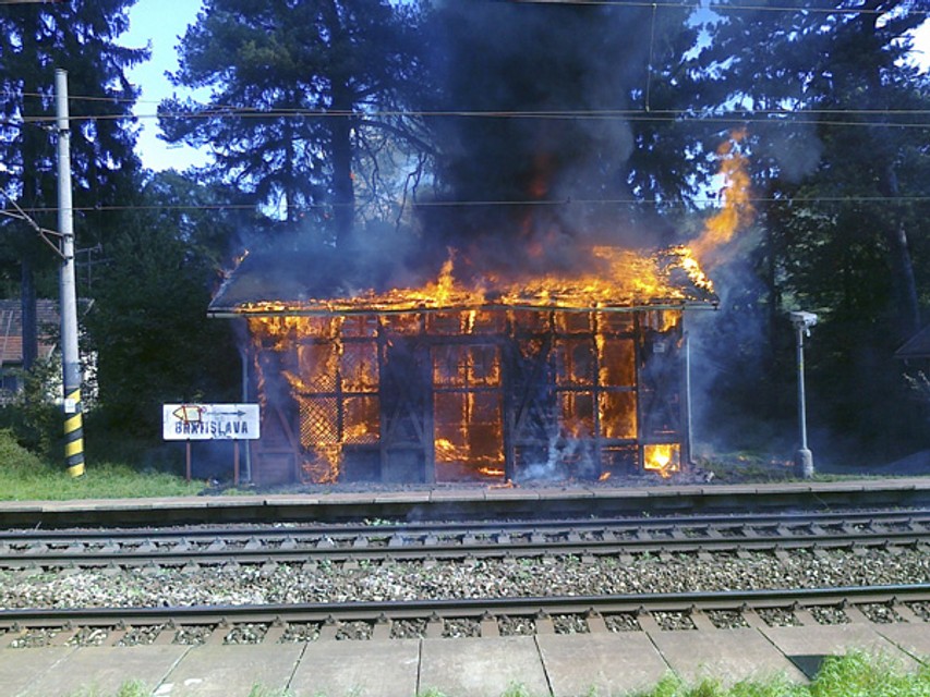 Požiar zničil čakáreň na stanici železná studienka - Poziar1