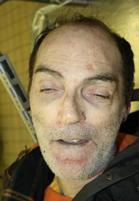 Neznámy muž mal oblečený šedočierny kabát a kapucňou, pri ľavom ramene s nápisom Quecha, pásikavý oranžovo-bielo-čierny sveter s logom Nike, pod ním žltý pulóver, rifle a čierne ponožky. Okolo krku mal károvaný žlto-hnedo-čierny šál. V nohaviciach mal opasok s prackou.