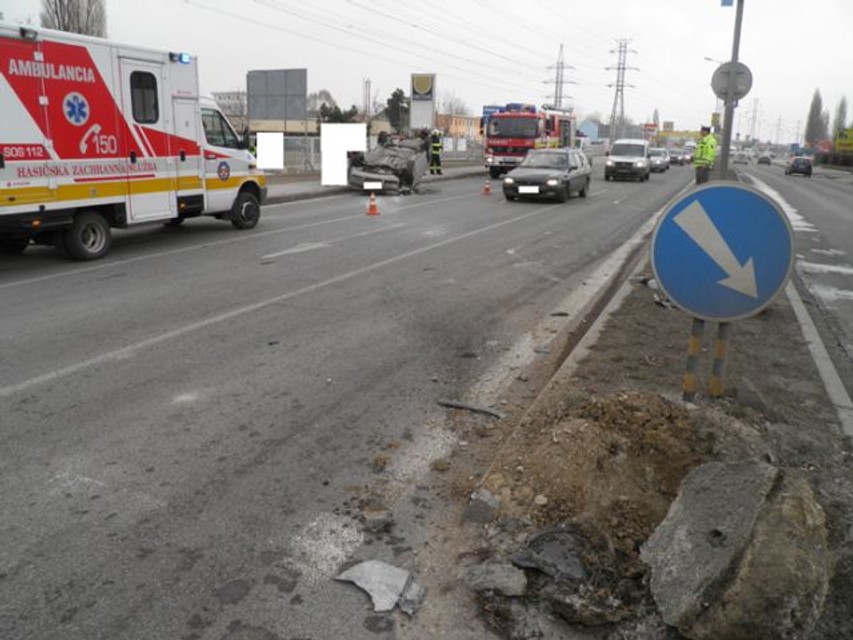 Vodič jazdiaci z Bulharskej ulice nerešpektoval "stopku" a pri výjazde z vedľajšej na hlavnú cestu ohrozil 36-ročného vodiča. Tento v snahe zabrániť zrážke, strhol riadenie, vyšiel na obrubník a následne sa s vozidlom prevrátil na strechu. Vodič a spolujazdec zranenia neutrpeli. Dychovou skúškou mu alkohol nezistili. Materiálnu škodu na aute vyčíslili na 4000 eur.